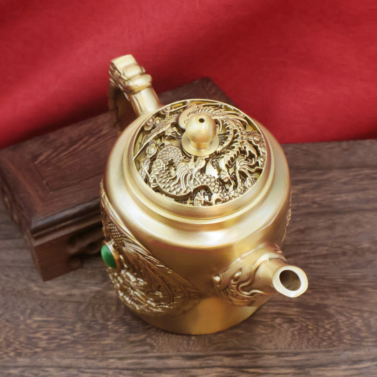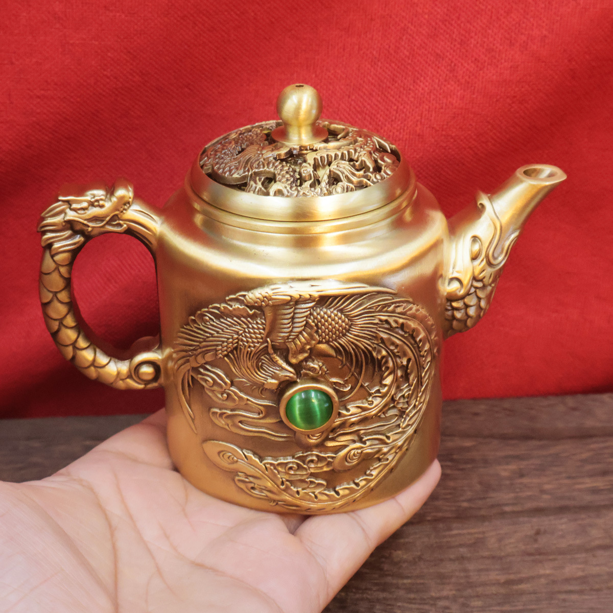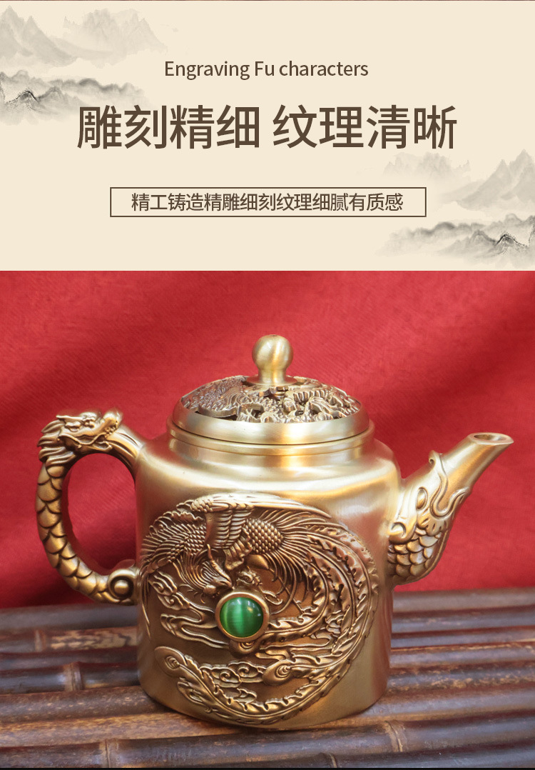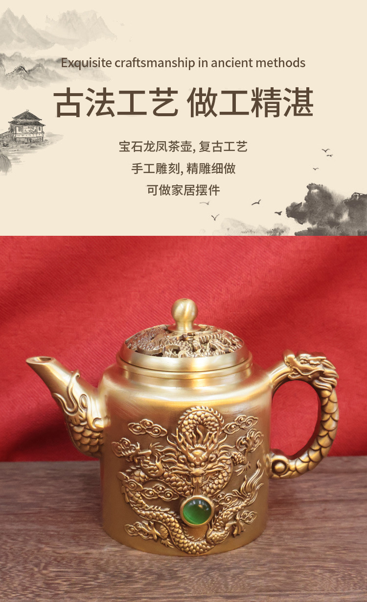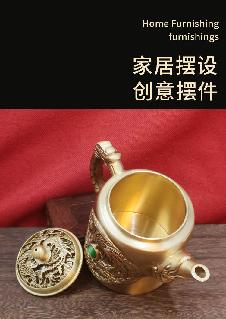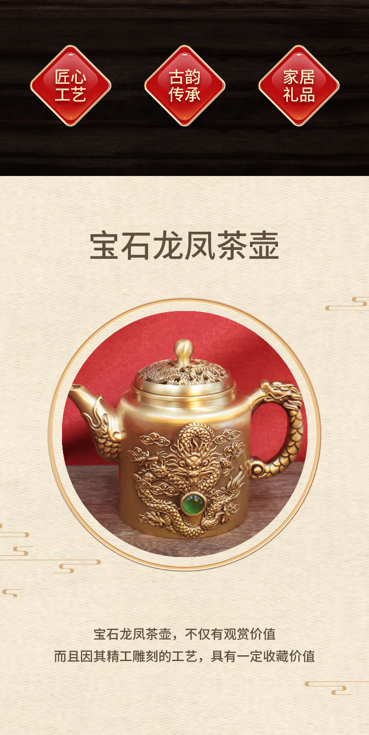 黄铜龙凤茶壶浮雕创意茶具家居办公会客茶几装饰桌面摆件铜工艺品 投诉