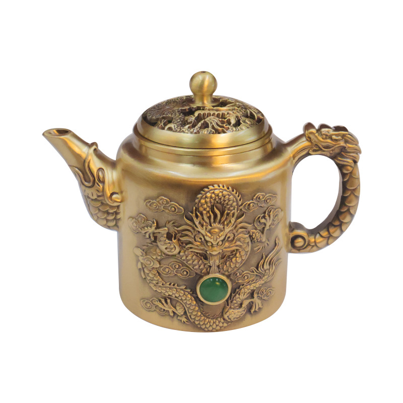 黄铜龙凤茶壶浮雕创意茶具家居办公会客茶几装饰桌面摆件铜工艺品