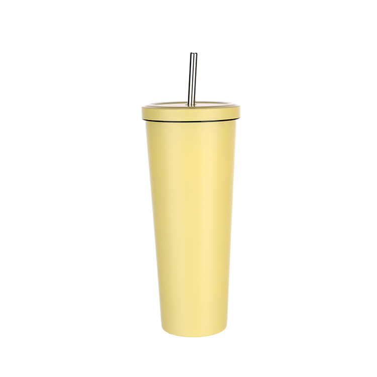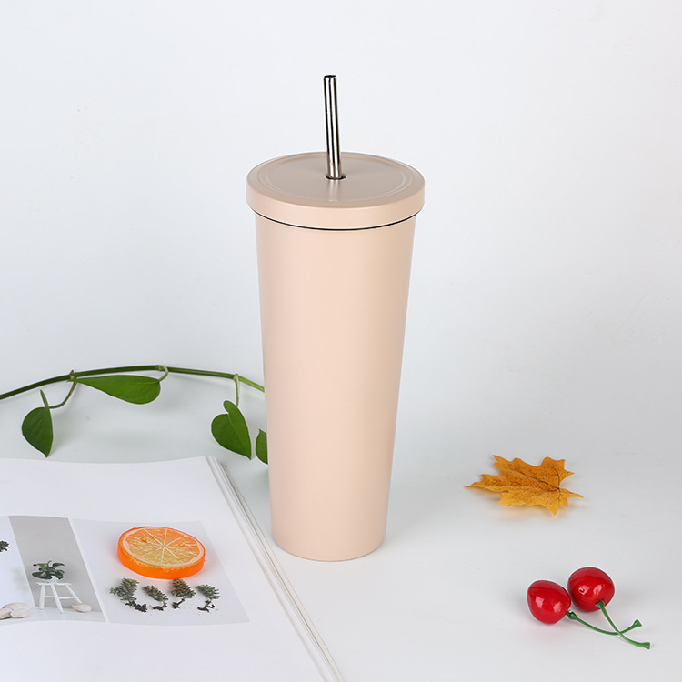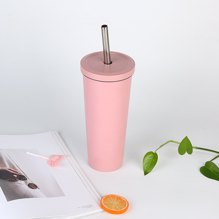 跨境304不锈钢吸管杯 马卡龙双层真空直身马克杯 便携咖啡保温杯