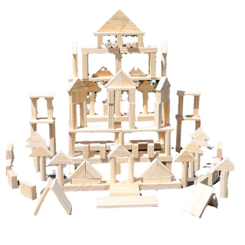 积木儿童幼儿园区角拼搭城堡原木实木超大颗粒松木玩具138块款