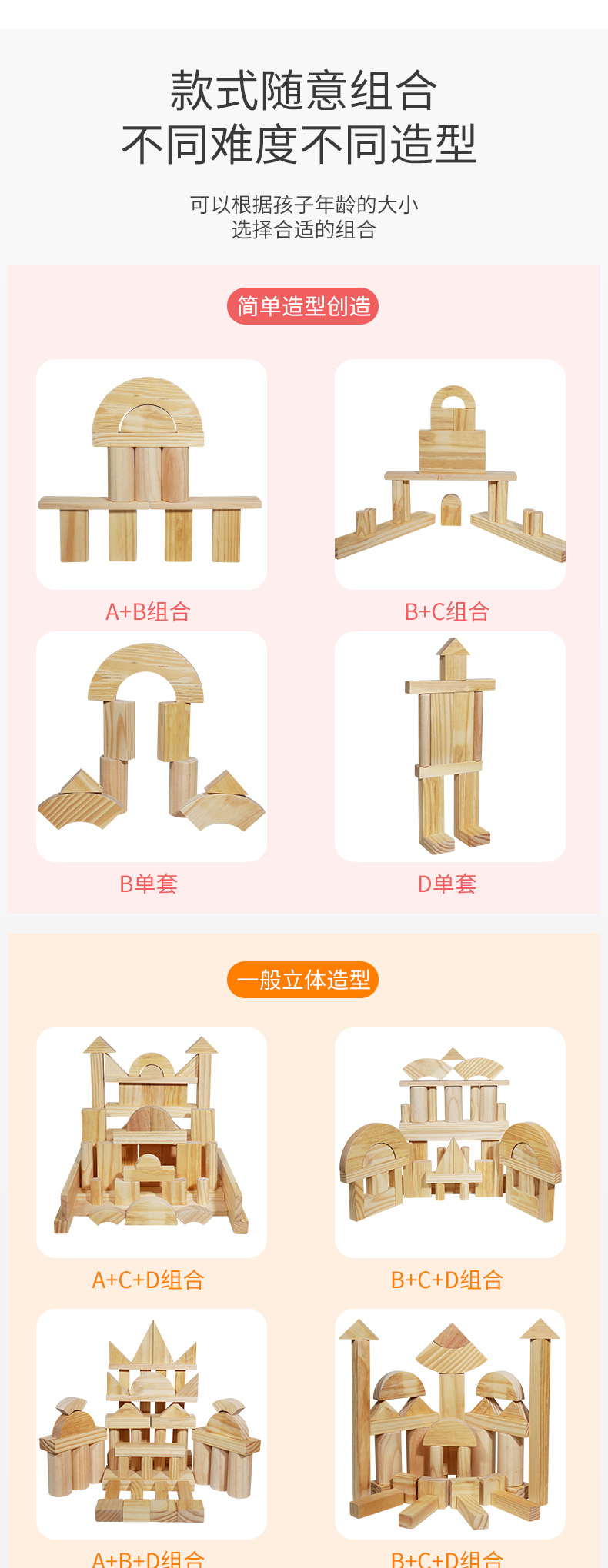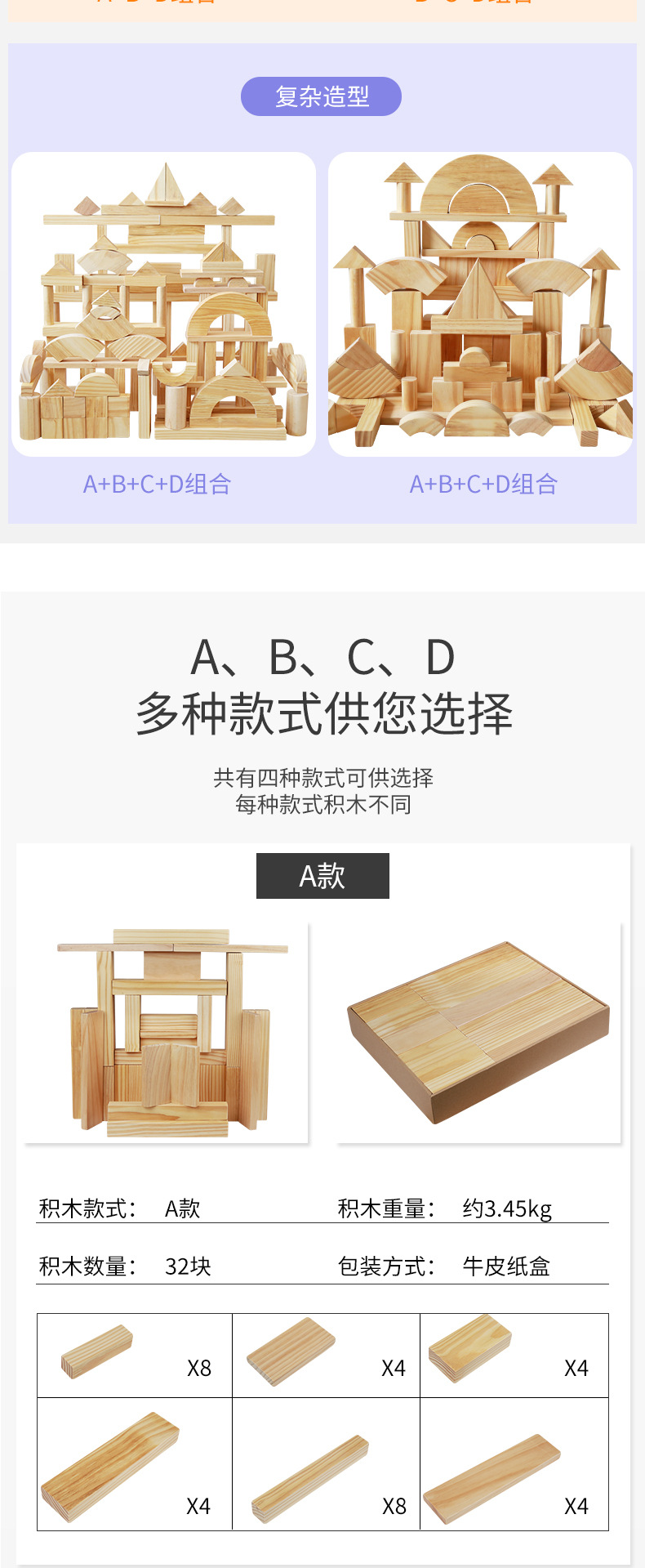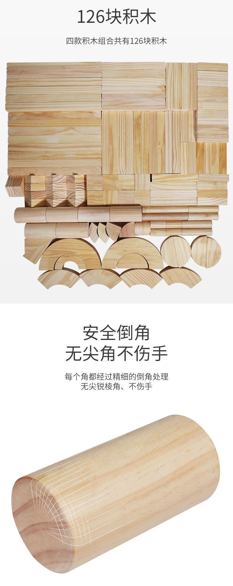 积木儿童幼儿园区角拼搭城堡原木实木超大颗粒松木玩具138块款 投诉