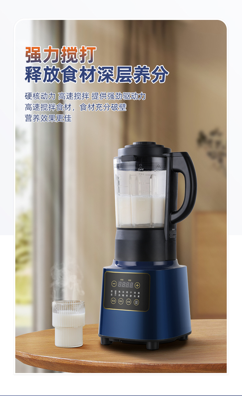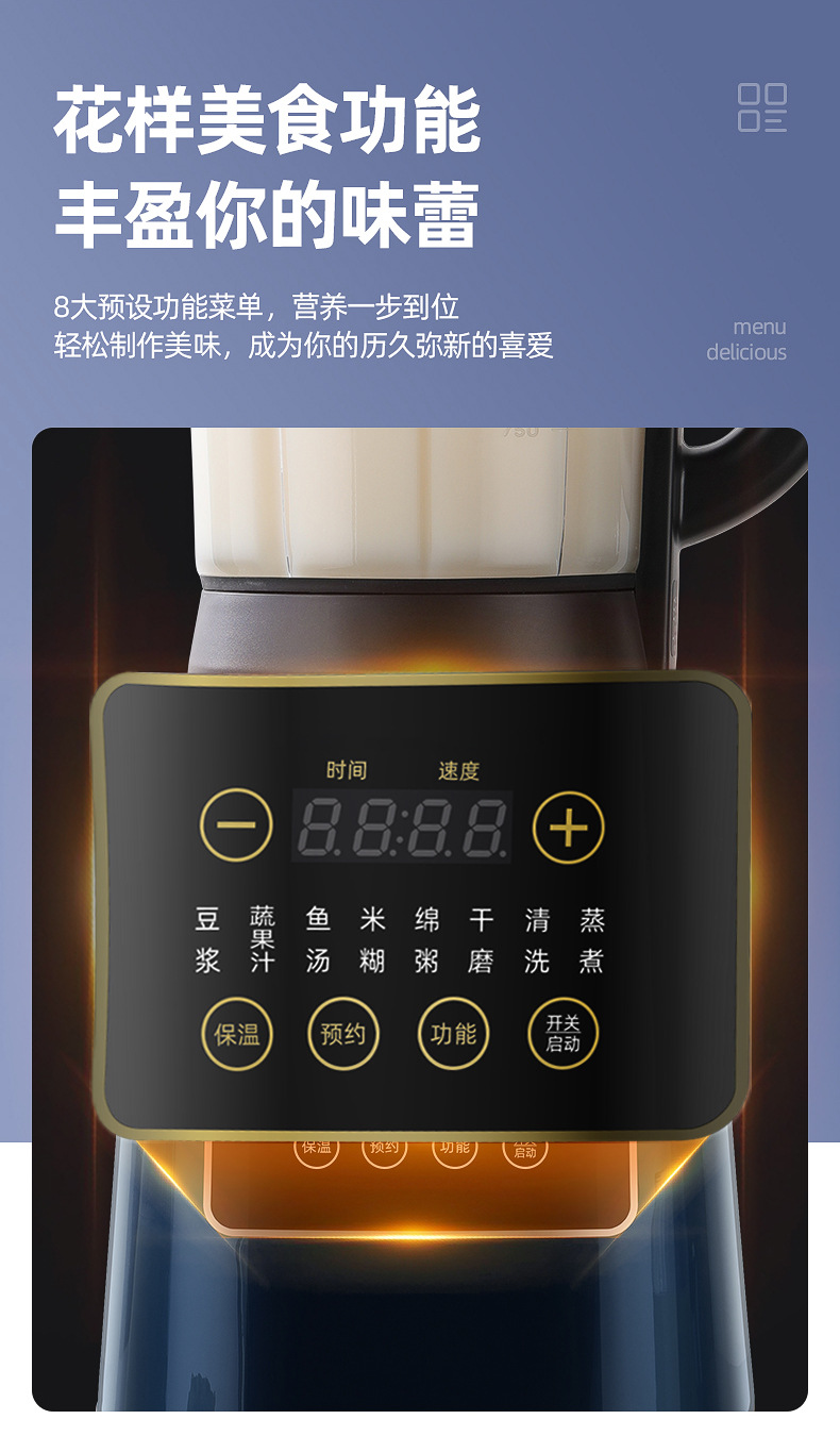 新款破壁机家用加热多功能料理机带罩轻音全自动智能豆浆机礼品厂