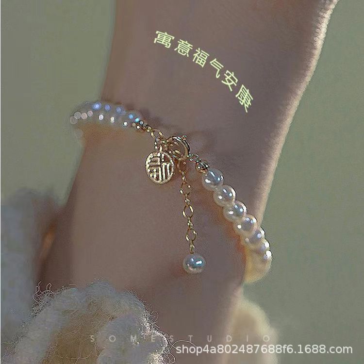 福牌珍珠手链女款小众简约设计ins复古新中式中国复古风学生礼物 English | 投诉