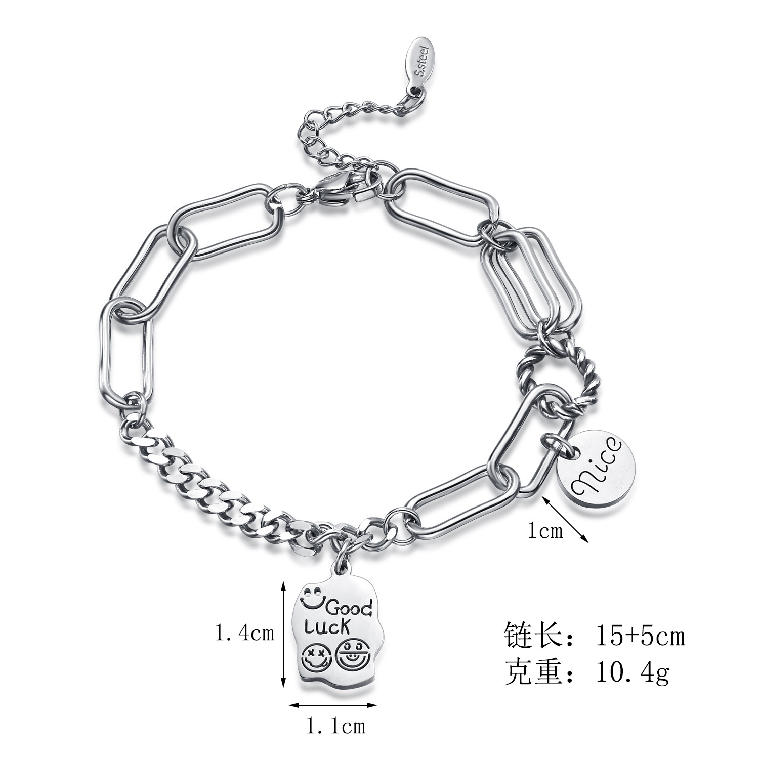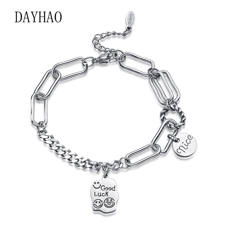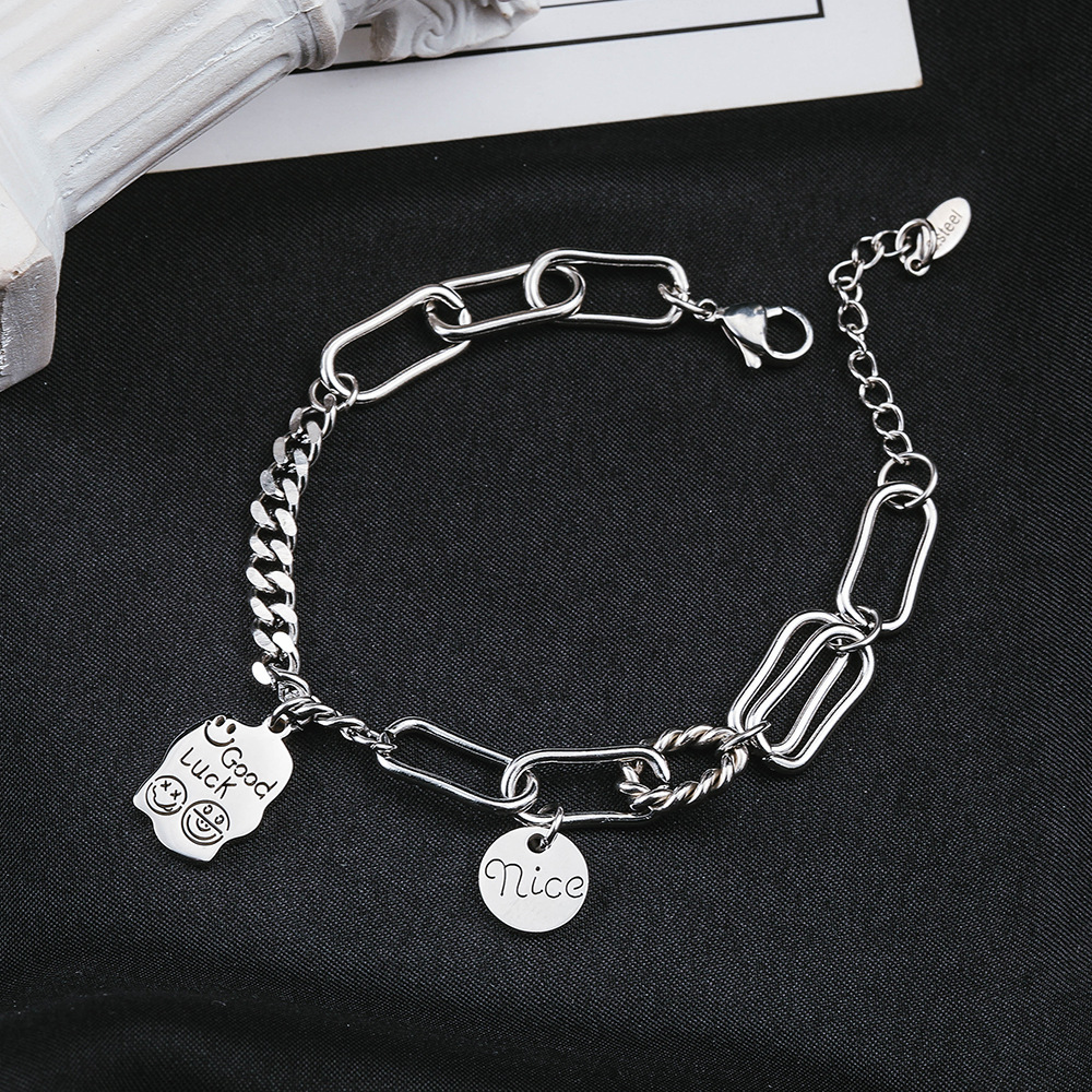 钛钢笑脸手链女几何不规则方牌吊坠手饰韩国个性设计ins简约手环 English | 投诉