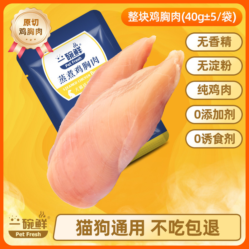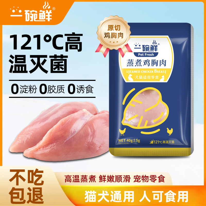 原切蒸煮鸡胸肉狗狗猫咪零食水煮鸡小胸肉宠物鲜肉零食包罐头40g