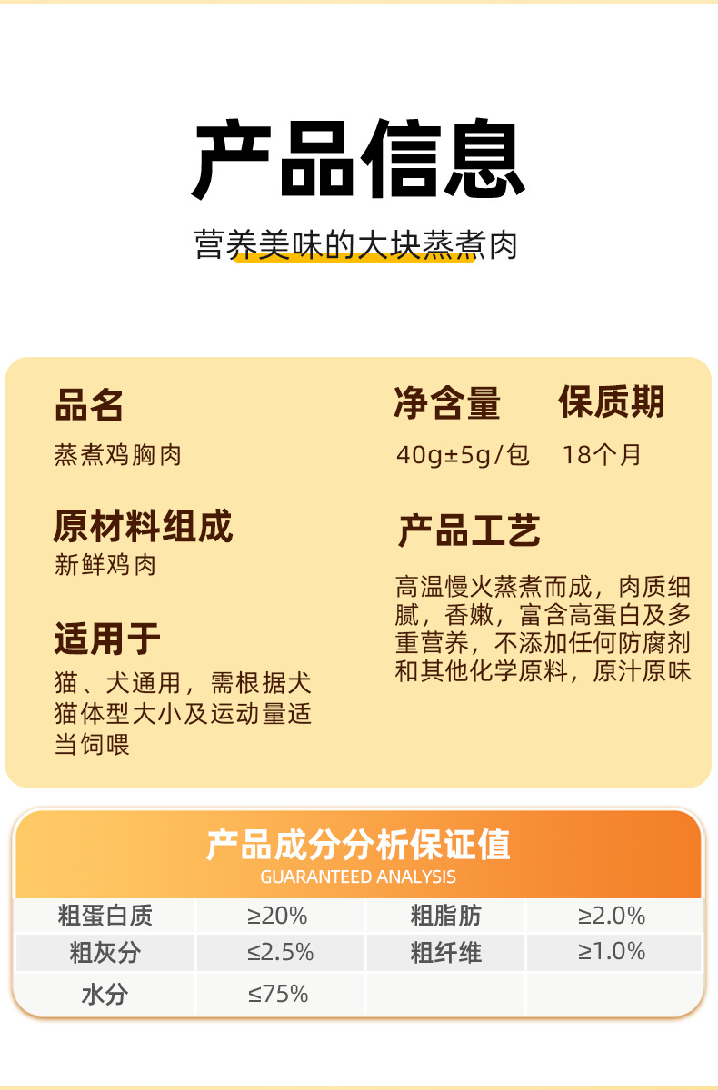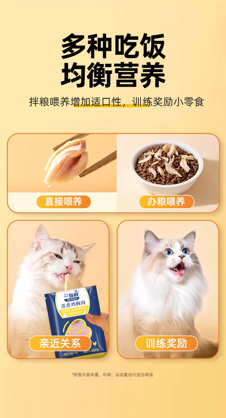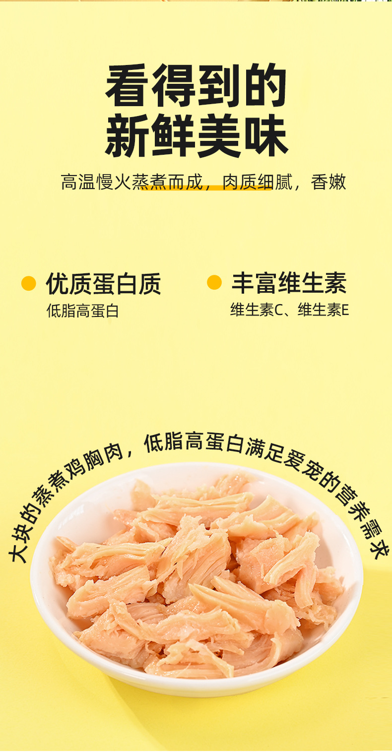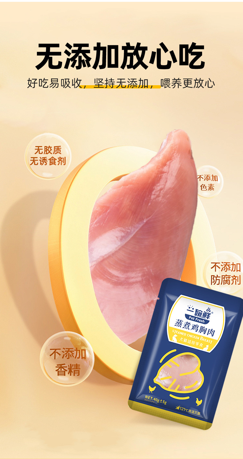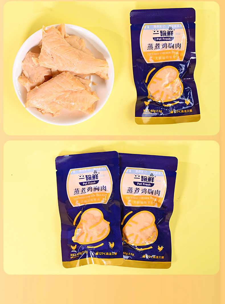 原切蒸煮鸡胸肉狗狗猫咪零食水煮鸡小胸肉宠物鲜肉零食包罐头40g English | 投诉