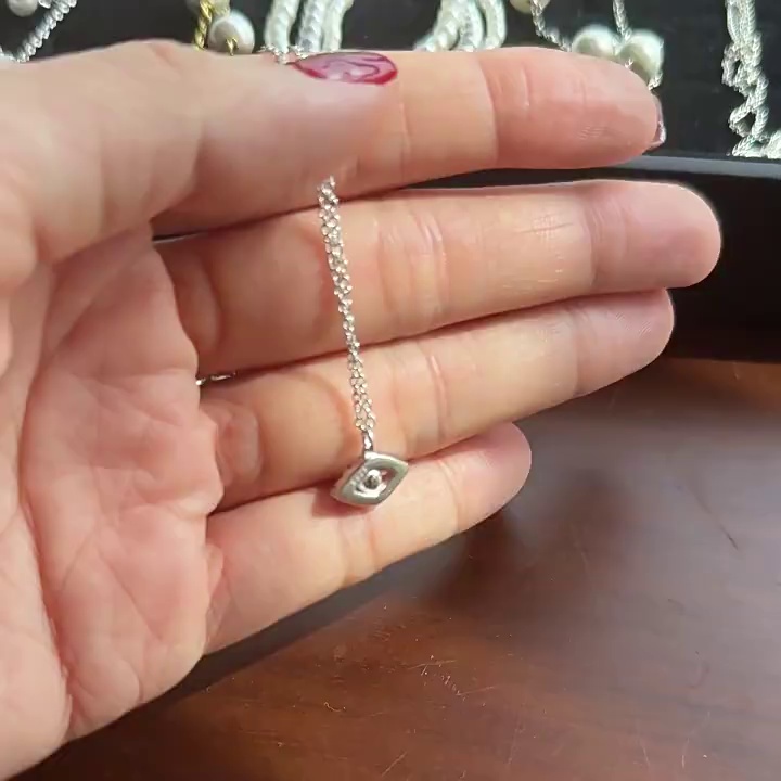 INS风新款S925纯银项链女黑色恶魔之眼珍珠项链镶嵌个性女锁骨链 投诉