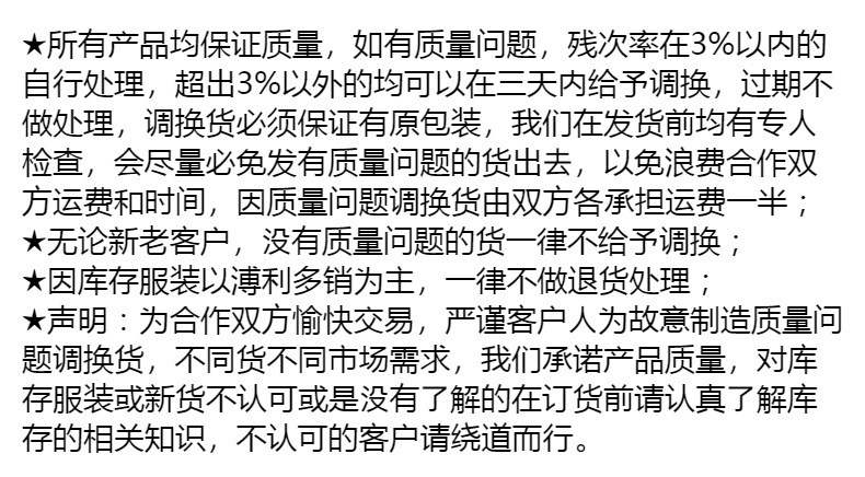 【产品详情】    本店所有商品一 律厂价直销,省去了实体店中的所有渠道环节,请广大商家放心订购! 欢迎广大商家亲自上门看货洽谈!