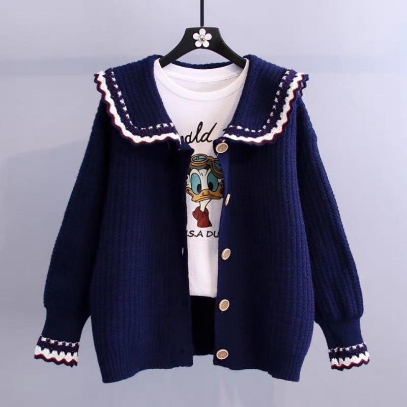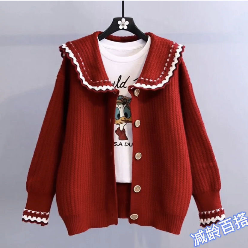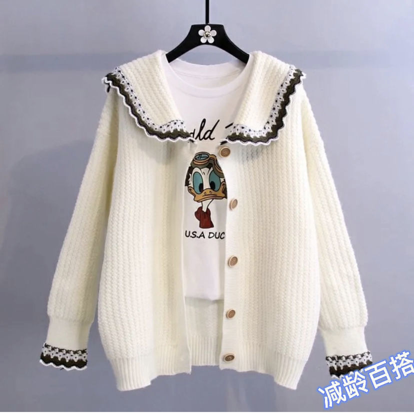 2025新款娃娃领毛衣外套女春季洋气宽松减龄百搭针织开衫外穿上衣 English | 投诉
