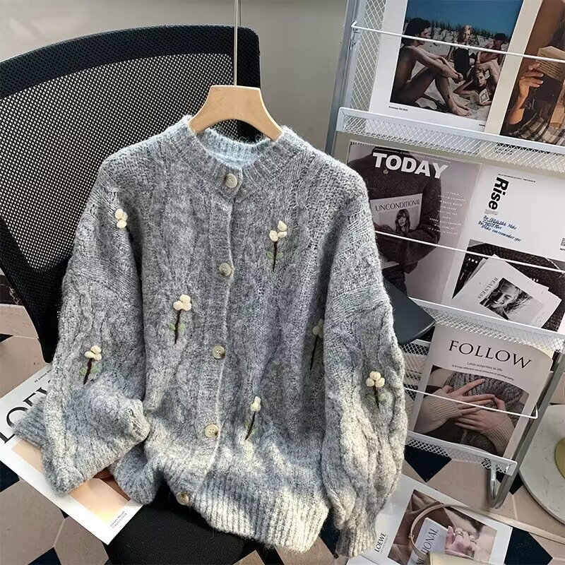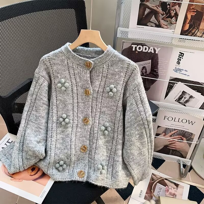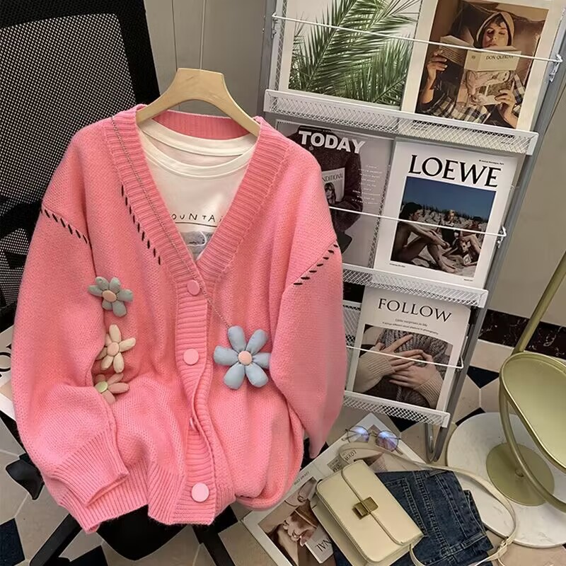 糖果色女装毛衣秋冬季新款针织开衫慵懒风毛衣批发女外套地摊货源