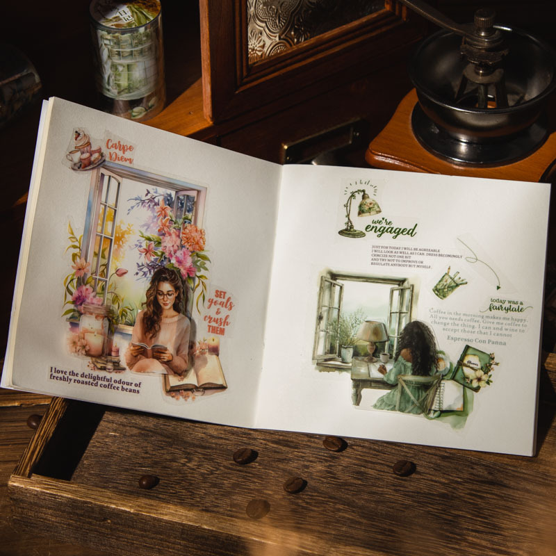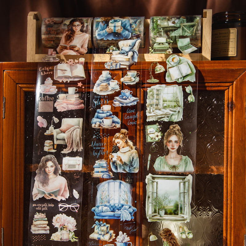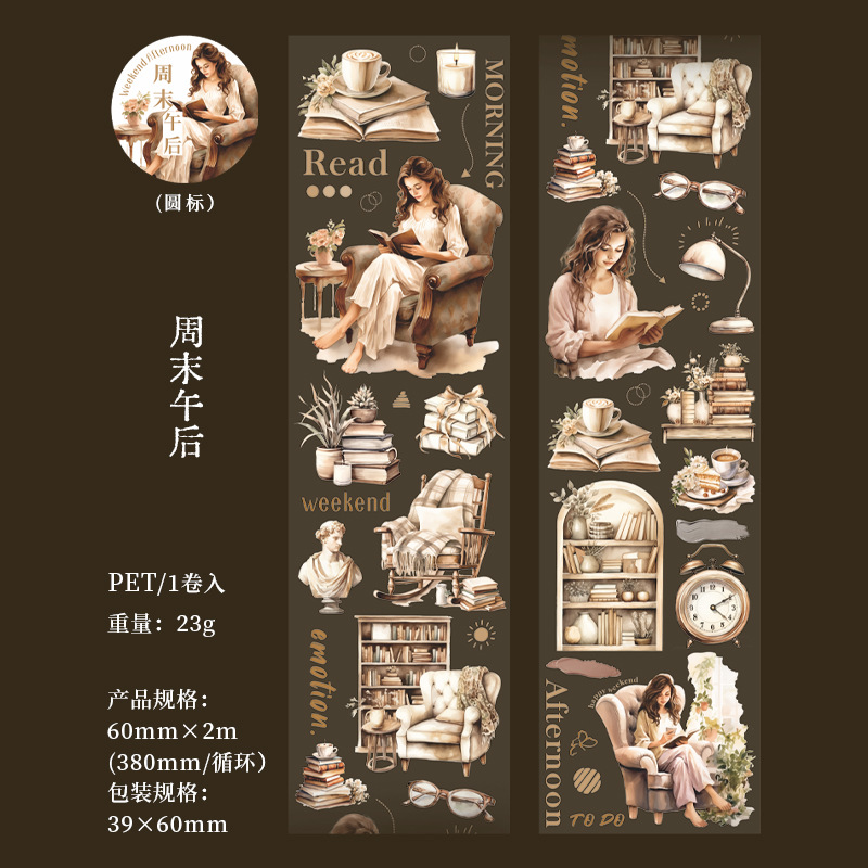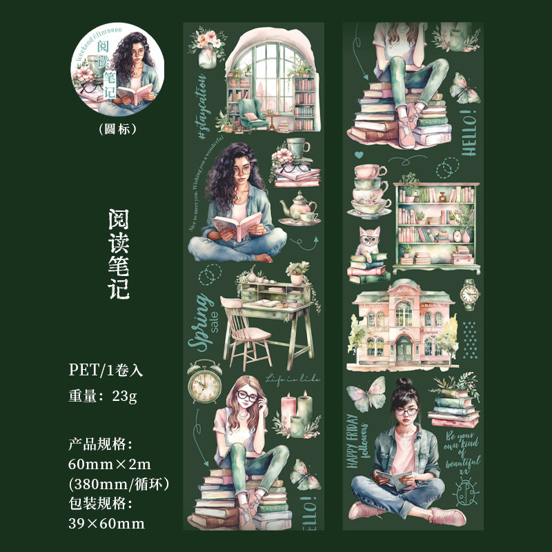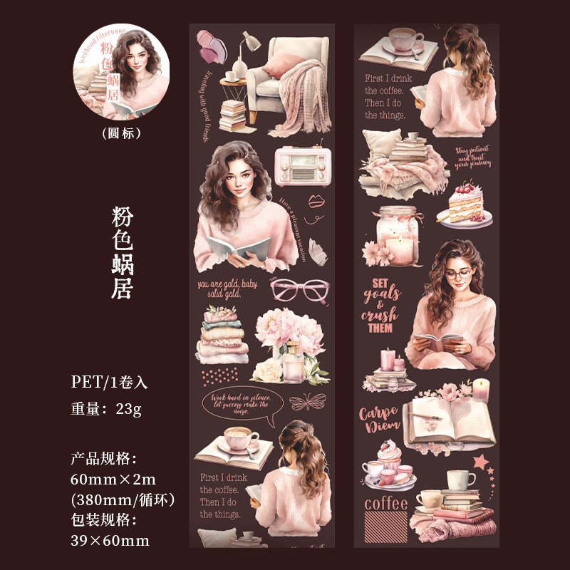 美好的一天胶带 《阅读时光》系列咖啡阅读主题人物手账造景素材 English | 投诉