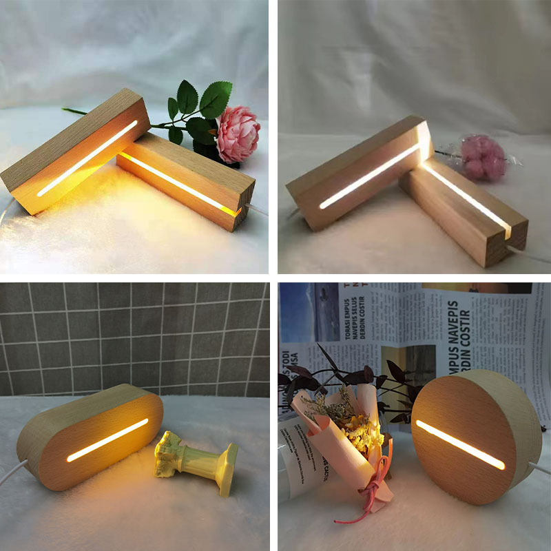 亚克力发光底座实木长条灯座 USB接口5V开关小夜灯榉木工艺品批发