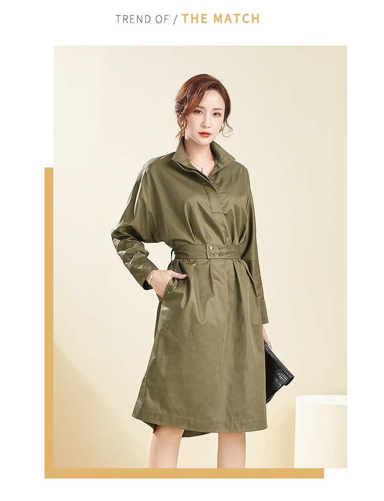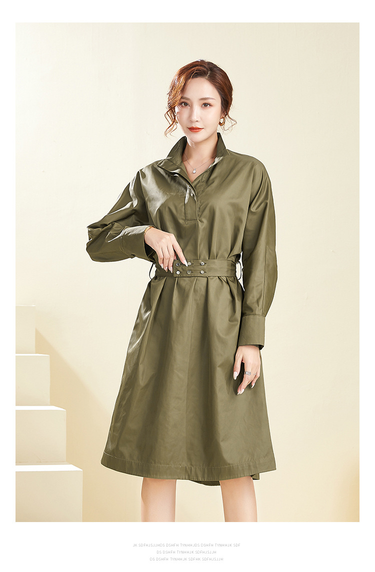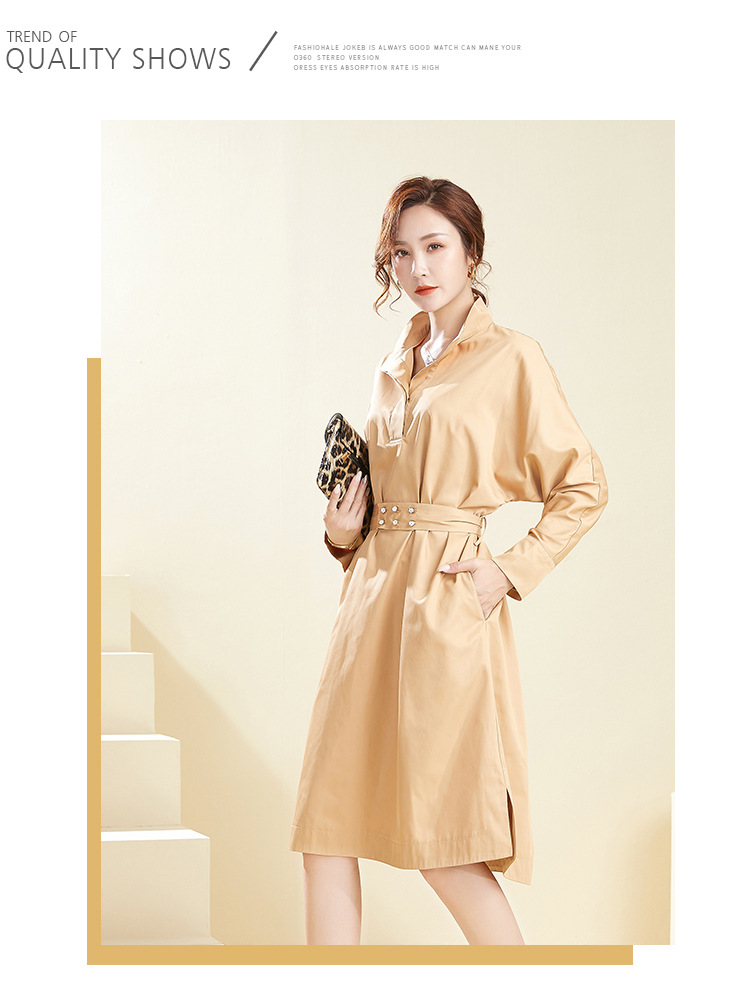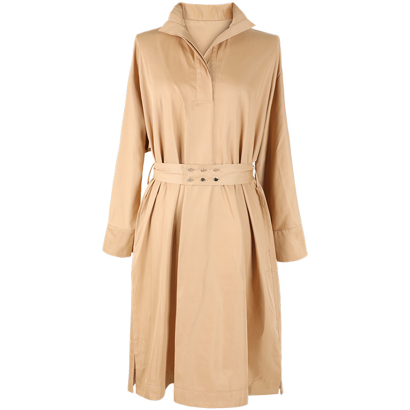 【39.9不退不换】简约休闲翻领中长款上衣纯色套头可拆卸腰带风衣 English | 投诉
