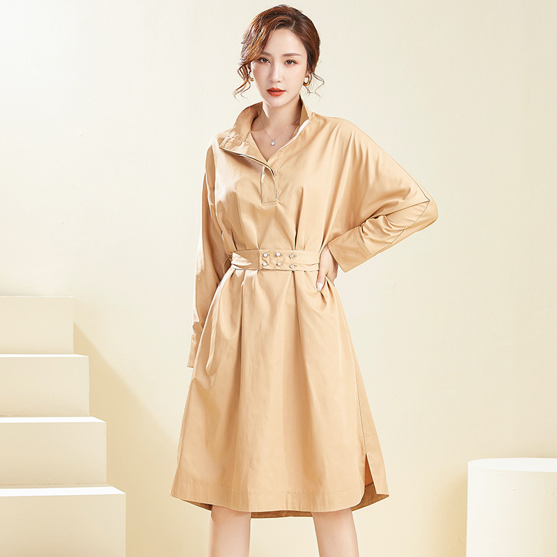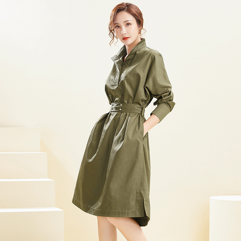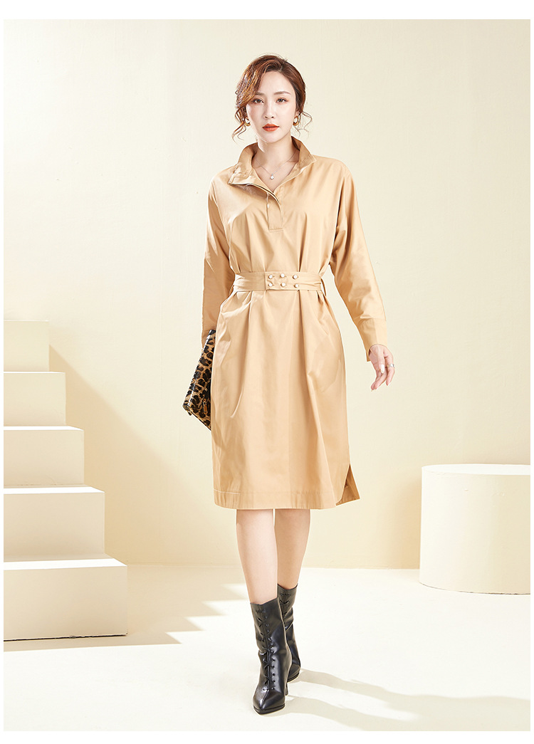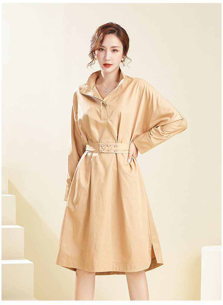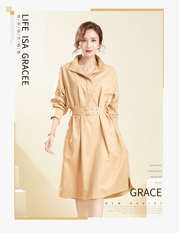 【39.9不退不换】简约休闲翻领中长款上衣纯色套头可拆卸腰带风衣 English | 投诉