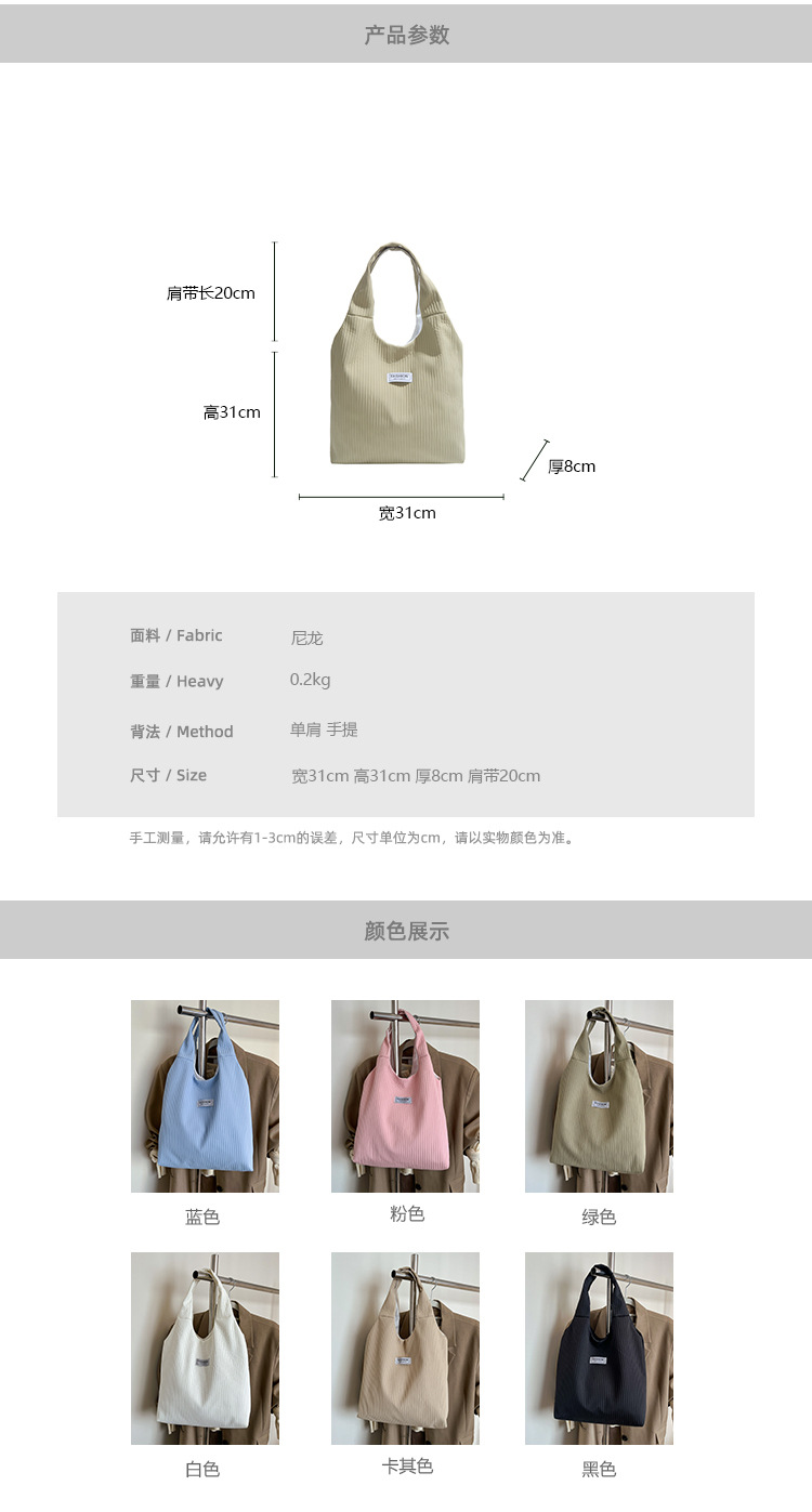 休闲通勤大容量灯芯绒包包女新款单肩包上班托特包背心包 English | 投诉