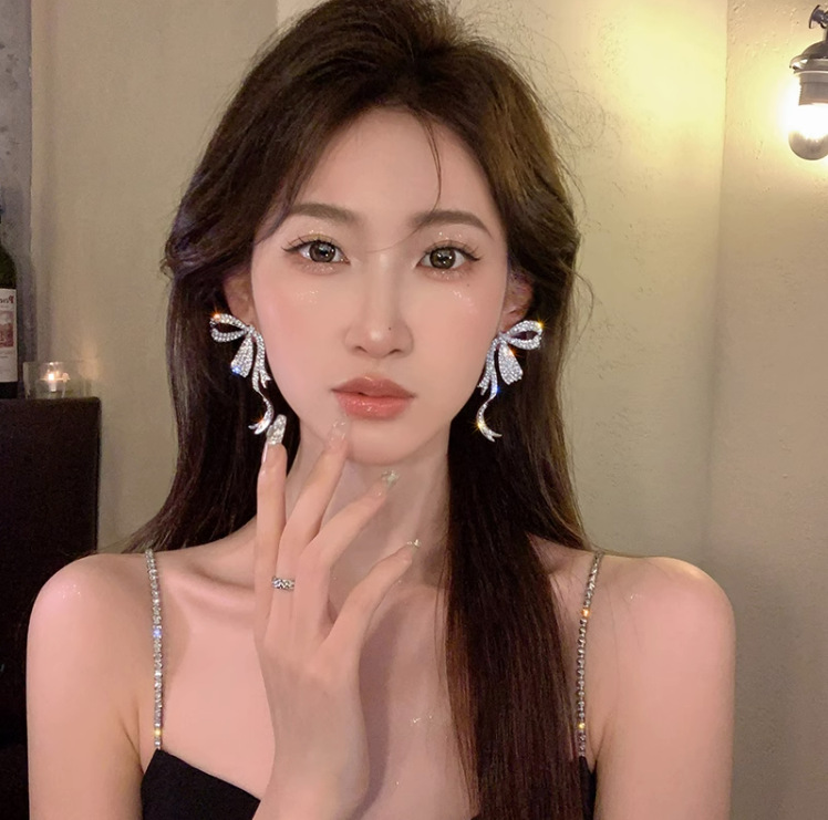 满钻飘带蝴蝶结耳钉女银针冷淡风耳环轻奢小众设计感感耳饰潮 English | 投诉