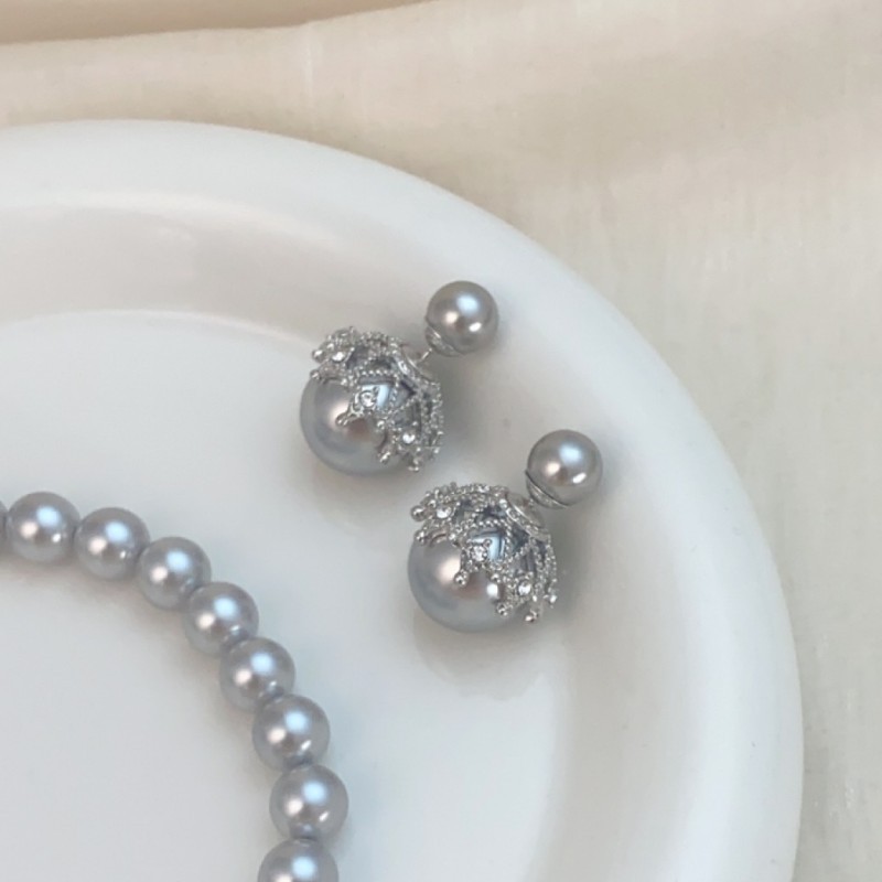 高级灰色珍珠耳钉前后两戴镂空锆石网状耳环高级感大小珍珠耳饰 English | 投诉