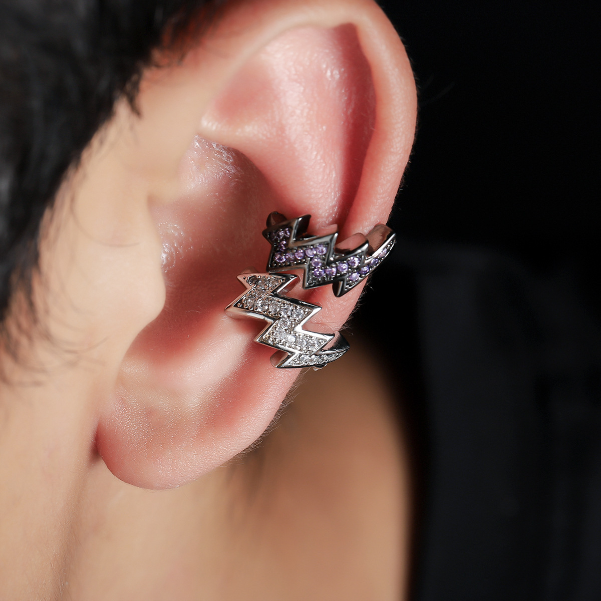 镶紫钻闪电耳夹男潮不规则心电图耳环个性简约冷淡风镶锆石耳环 English | 投诉