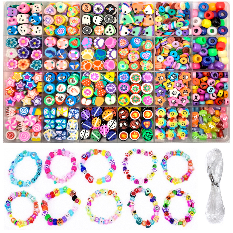 欧美跨境款粘土珠软陶片diy套盒 亚马逊软米珠字母珠手工饰品手链 English | 投诉