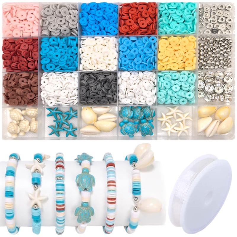 欧美跨境款DIY儿童手链项链粘土珠软陶片字母珠间隔饰品配件套装
