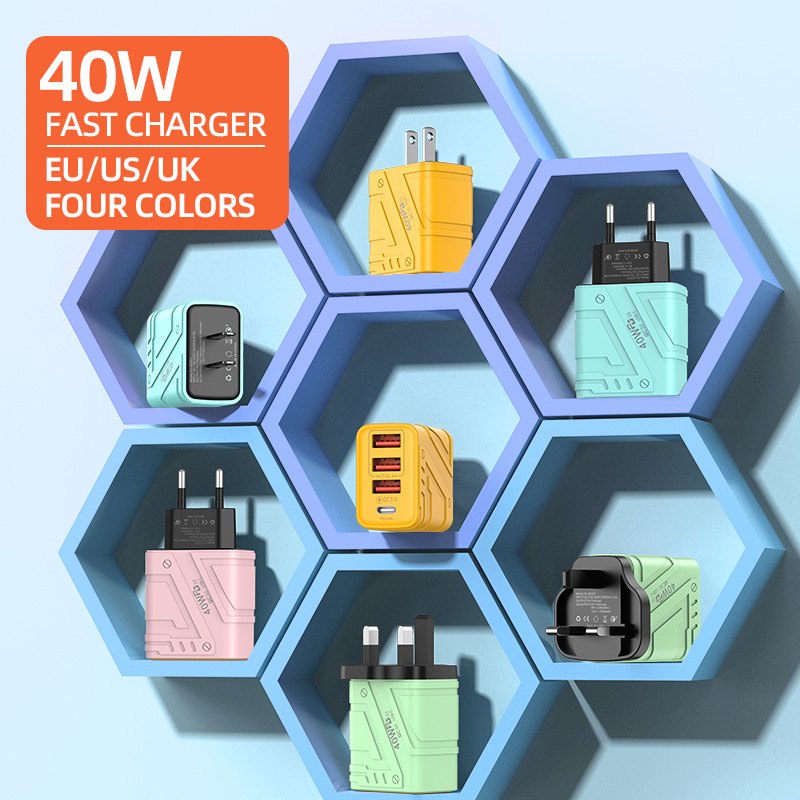 跨境新款3USB+1PD Type-c手机充电器 多U口欧美规英 规四口快充头 投诉