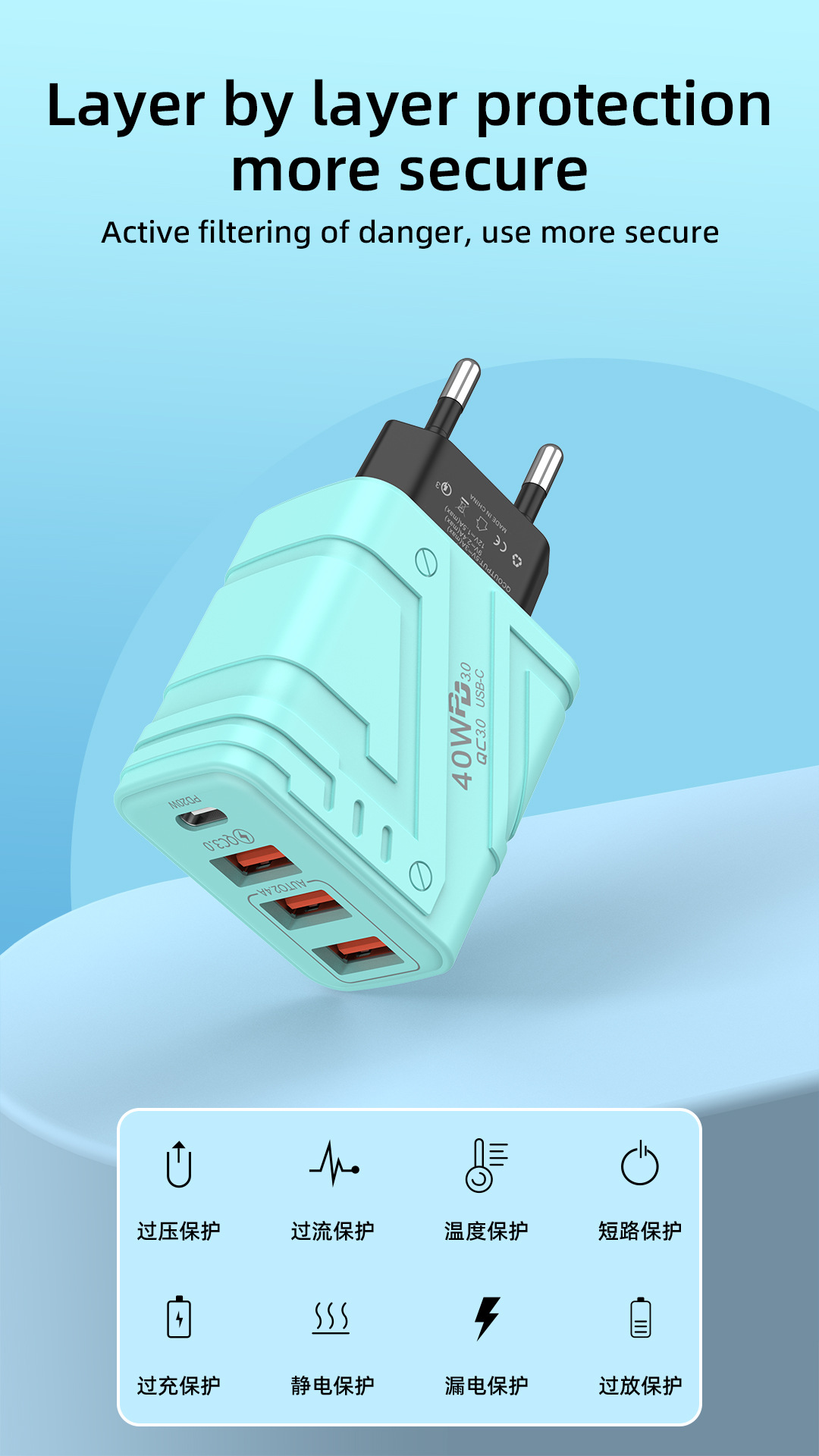 品牌: 中性 产品认证: CE 适用型号: 机甲40W 欧规黄色,机甲40W 欧规青 充电协议: QC3.0 充电器适用形式2: 多U口 插头标准: 欧标 是否数显: 否 输出功电流总功率: 10W 输出电流: 2A 最大输出功率: 10W