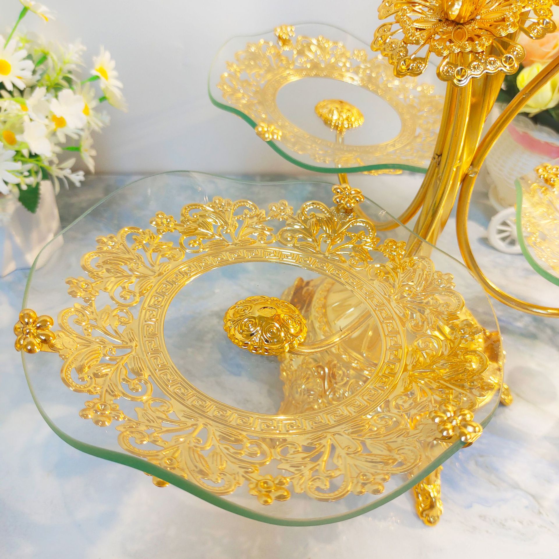 欧式玻璃水果盘零食盘创意客厅茶几家用酒店KTV精美摆件工厂直发