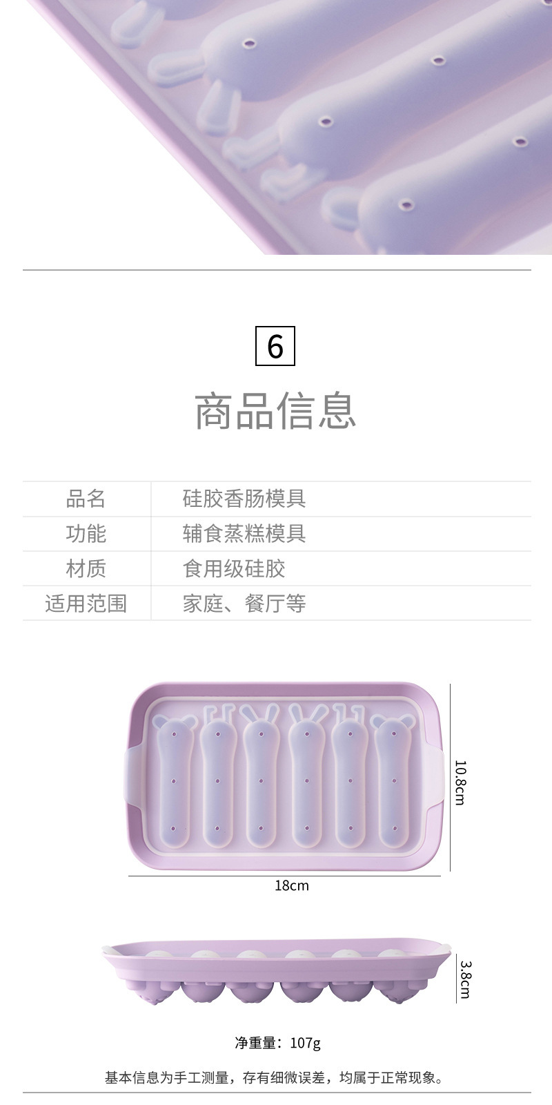 | 儿童硅胶香肠模(紫色) | ¥0 | 2481件可售 |