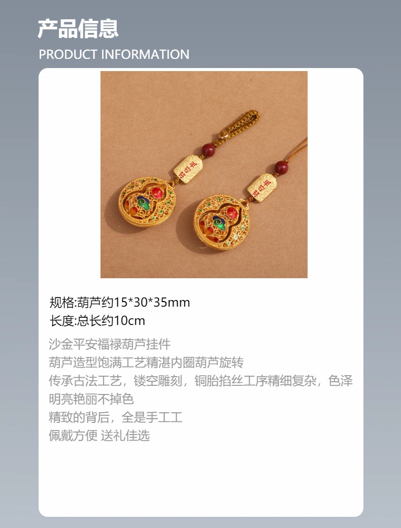 情侣款创意沙金平安葫芦钥匙扣汽车钥匙挂饰男女手机链福禄礼品 English | 投诉