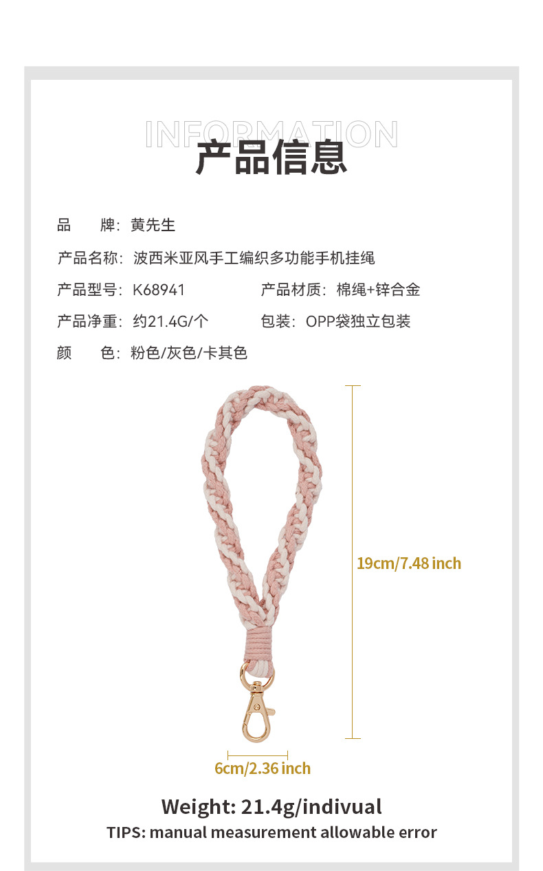 波西米亚风手工编织手机挂绳手腕款高级感户外旅游耐用防丢手机绳