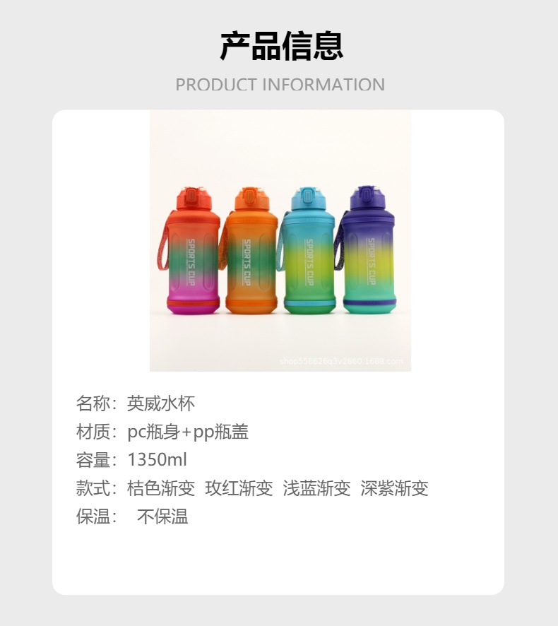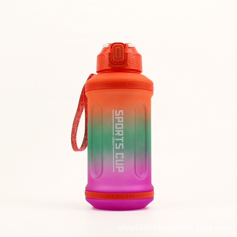 1350ML渐变吸嘴水壶大容量水杯便捷手绳水壶男女户外运动