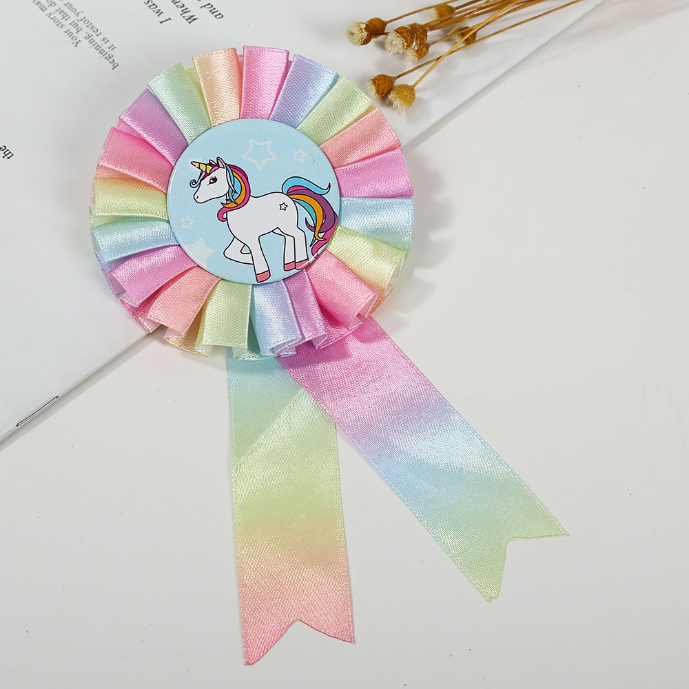 厂家供应生日派对胸花 独角兽胸花派对胸花 缎带奖励 织带胸花