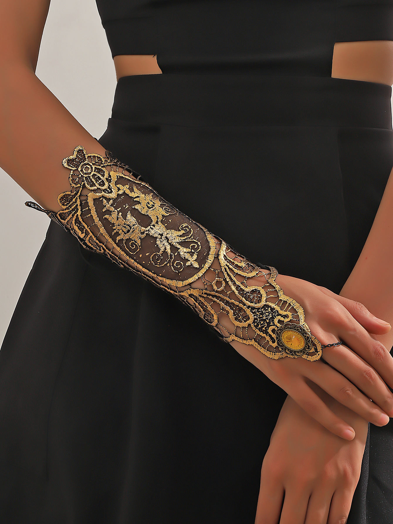 欧美跨境饰品新款金色手套复古蕾丝花边手套礼服装饰搭配女士手链