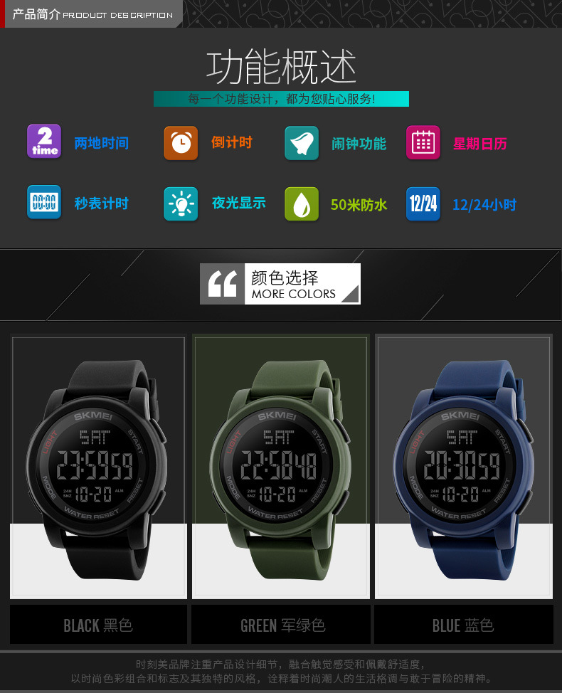时刻美个性潮流男士运动手表户外运动多功能电子表外贸热卖学生表 English | 投诉