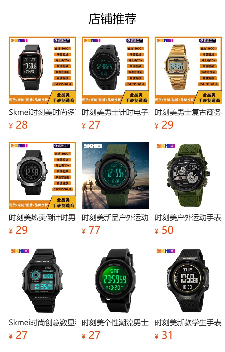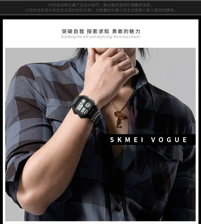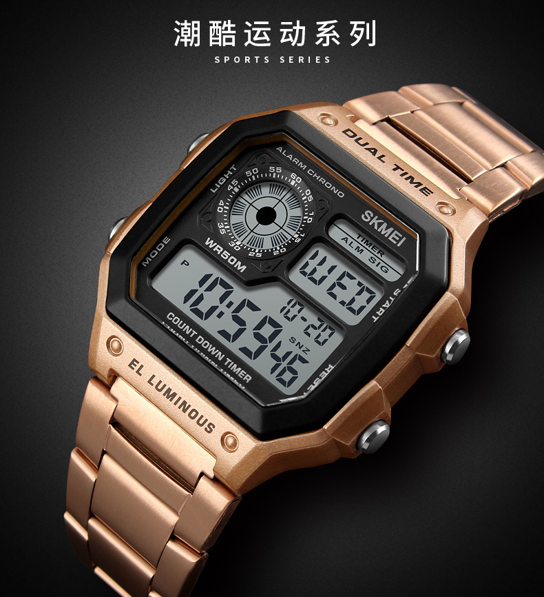 skmei时刻美时尚潮流男士手表跨境户外运动个性方形数显电子手表 English | 投诉