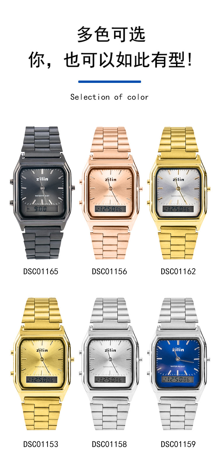 复古男生方形手表爆款冰蓝女士时尚跨境电子手表防水合金壳钢带 English | 投诉
