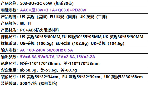 65W AAC=3.1A+QC3.0+PD20w