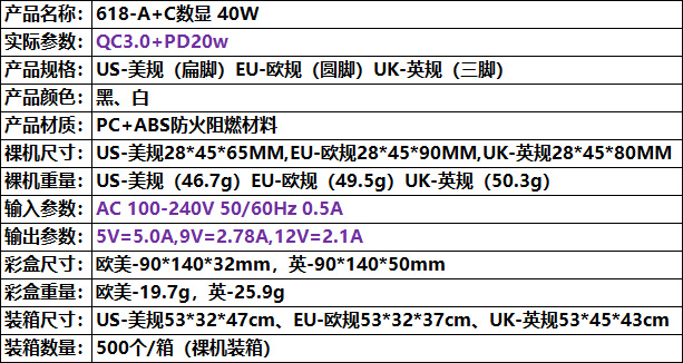 40w=QC3.0+PD20W