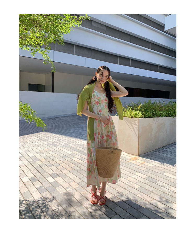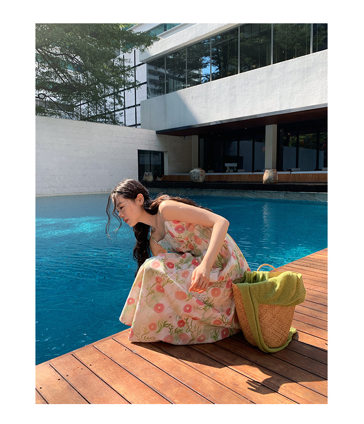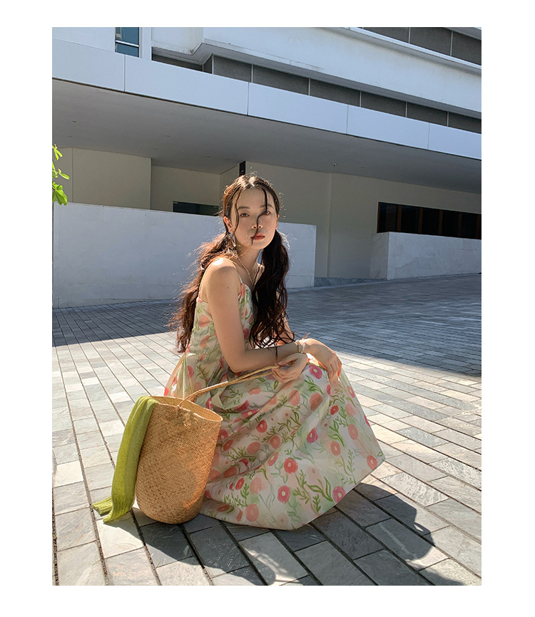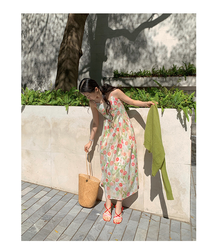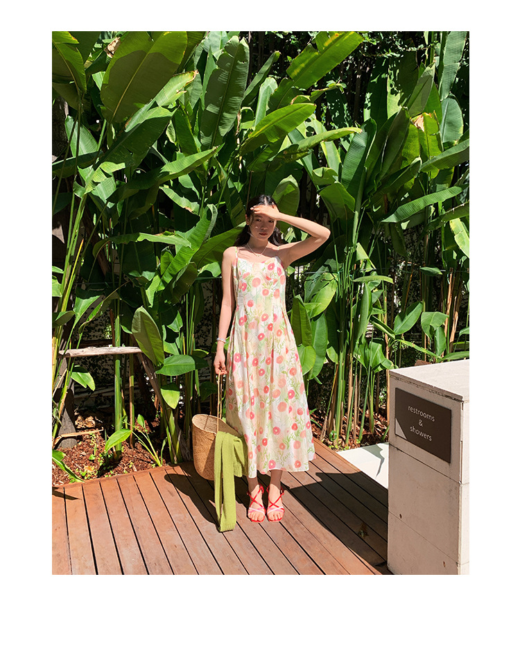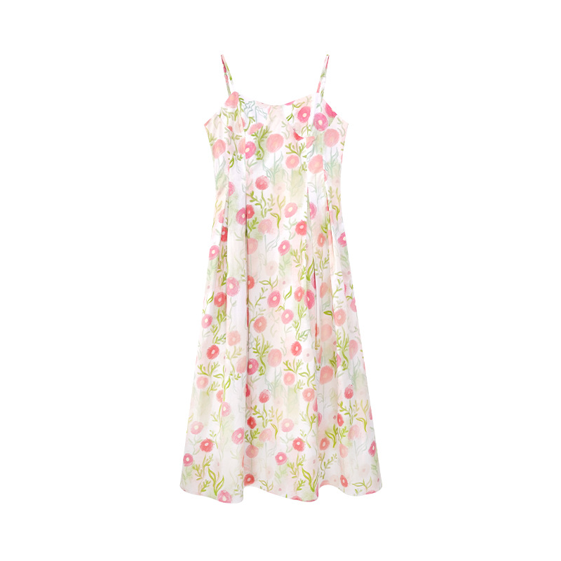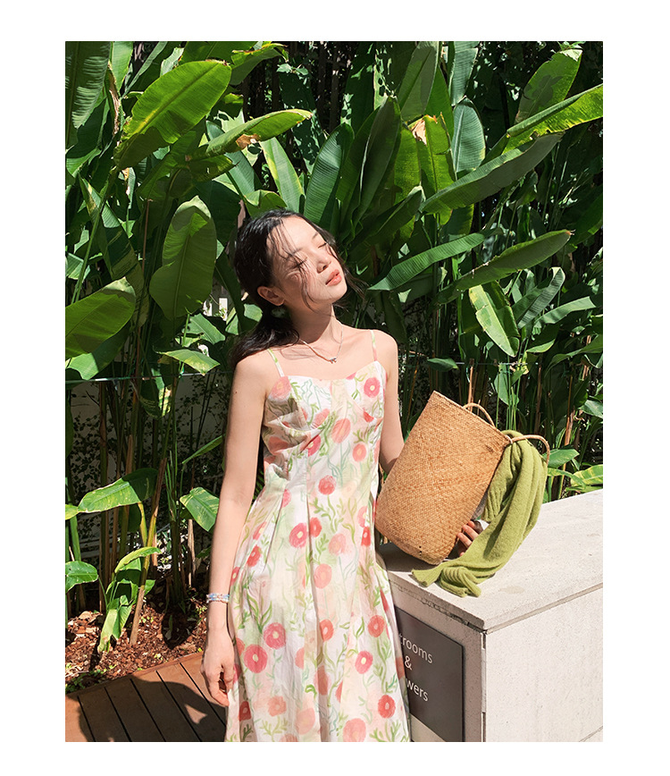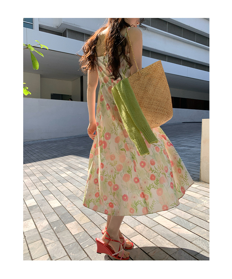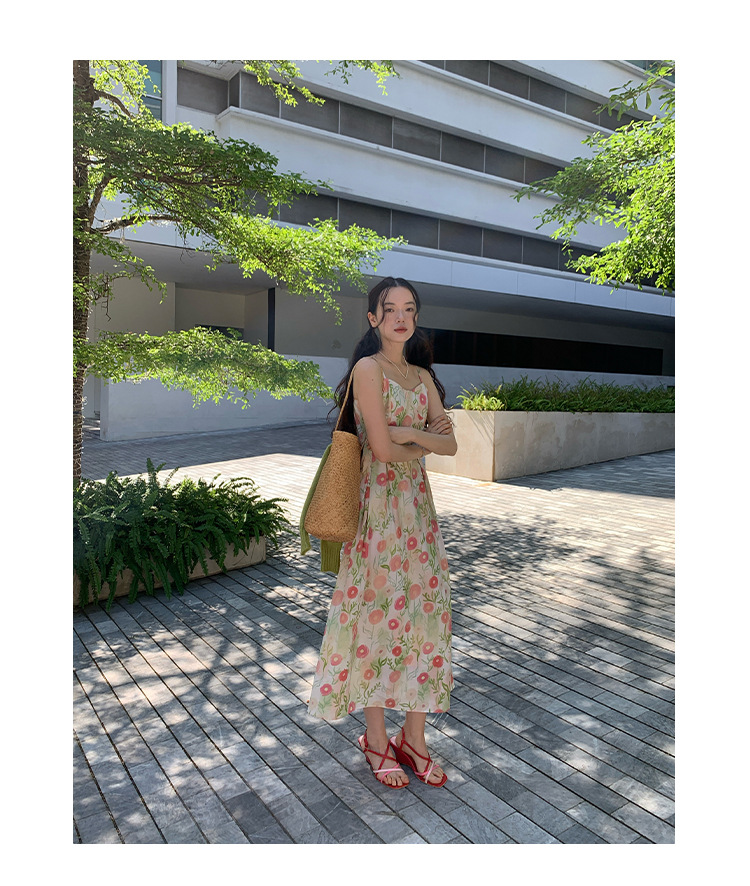 2025春法式浪漫度假风减龄碎花吊带连衣裙C3001