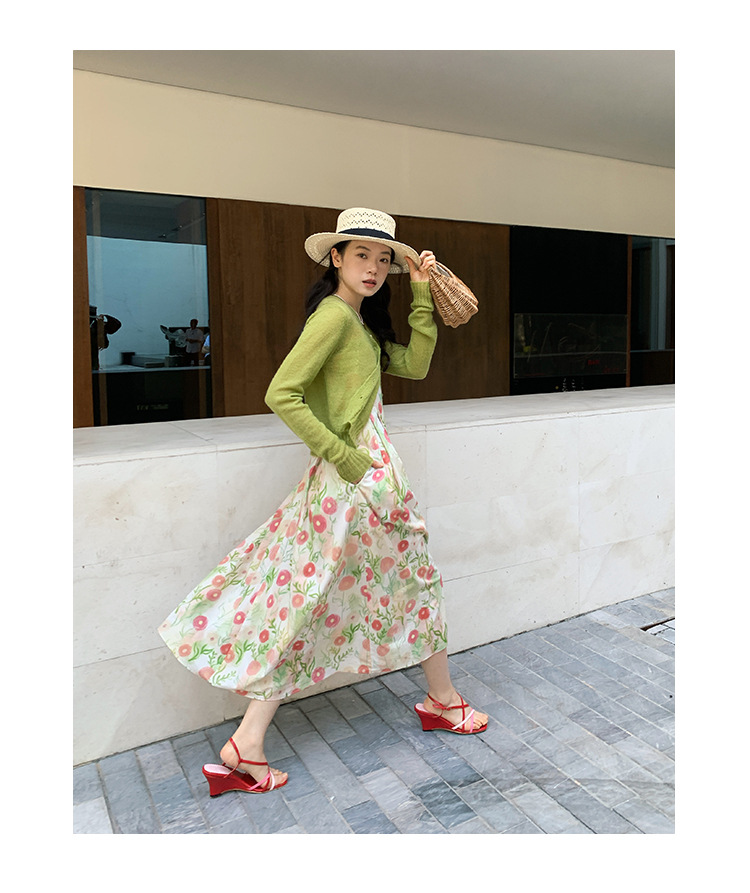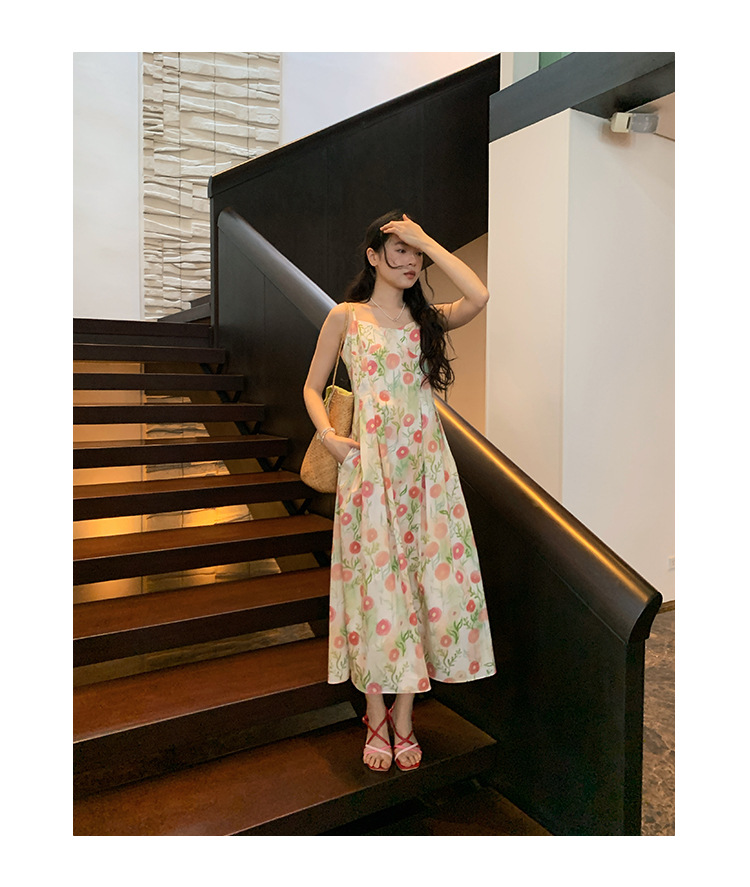 2025春法式浪漫度假风减龄碎花吊带连衣裙C3001 English | 投诉