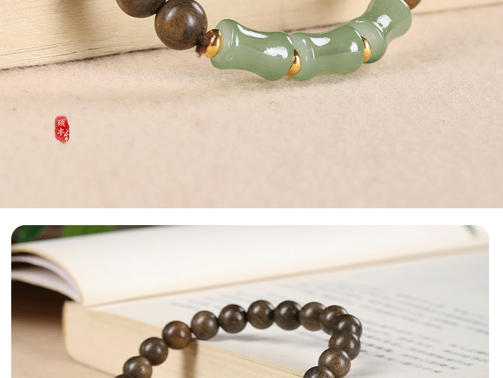 沉贵宝沉香diy东陵玉单圈手串节节高升男女礼物原创木质手链饰品 English | 投诉