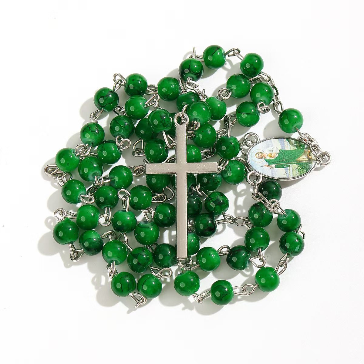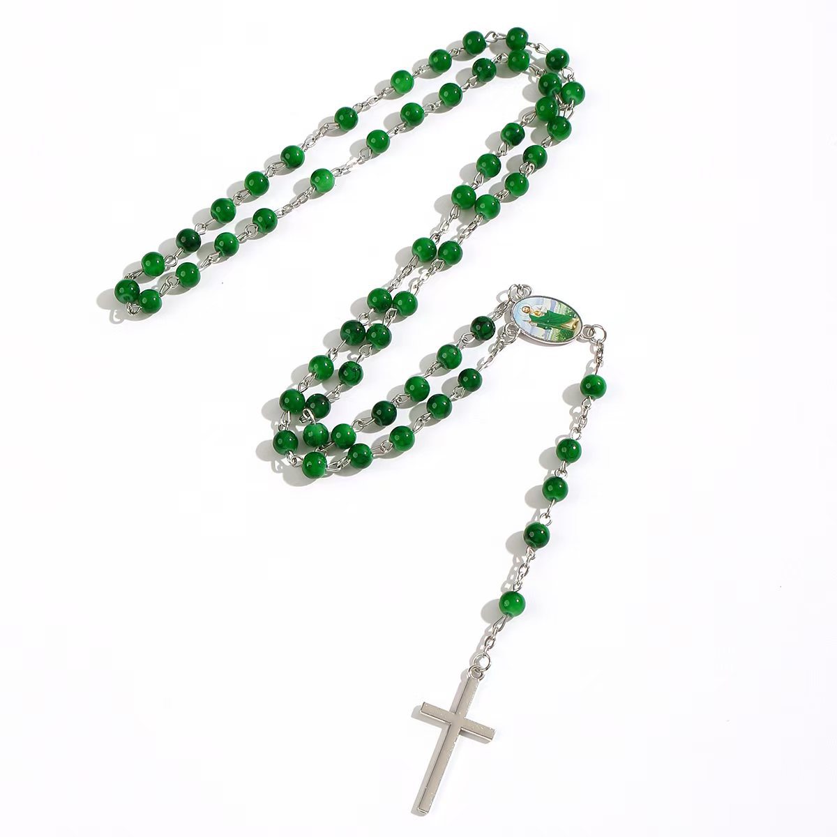 跨境电商热销6mm拉丝珠十字架项链念珠洗礼祈祷 English | 投诉