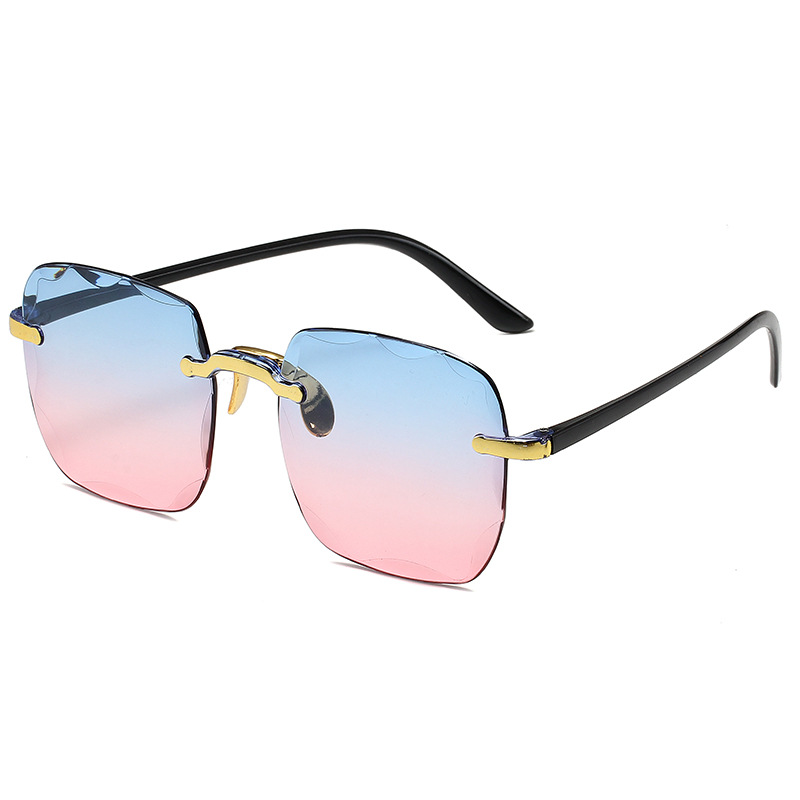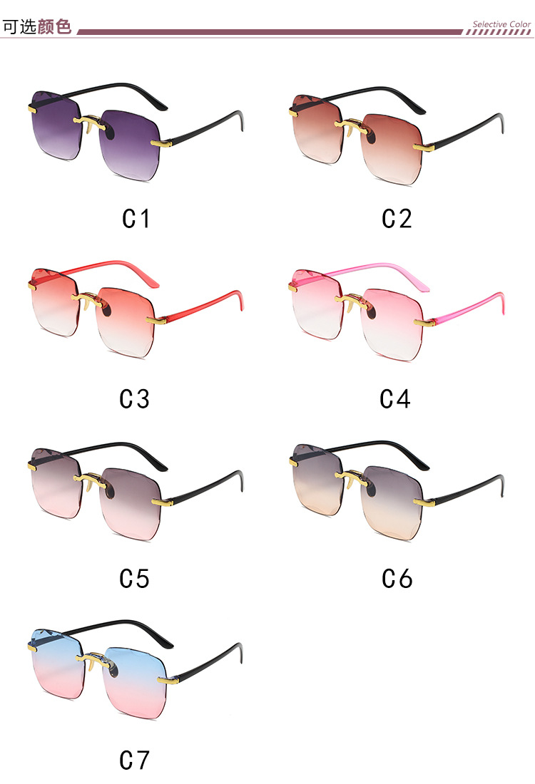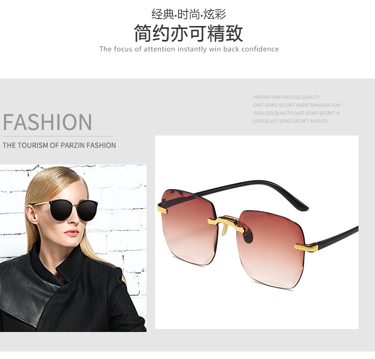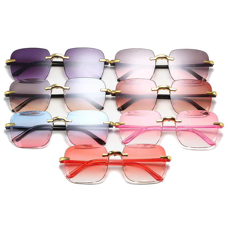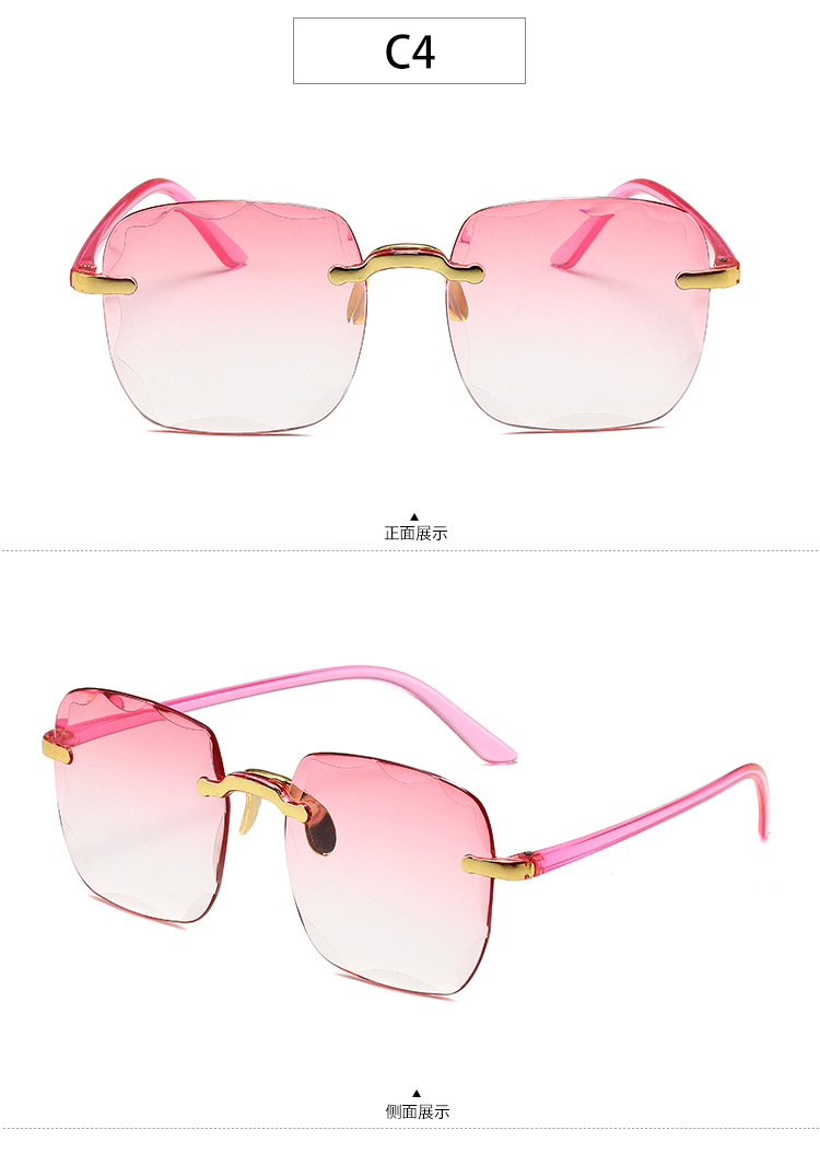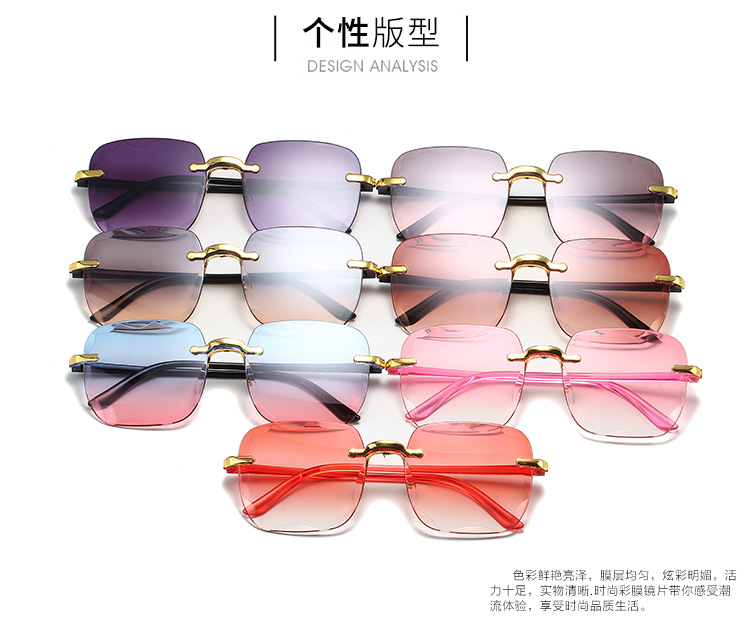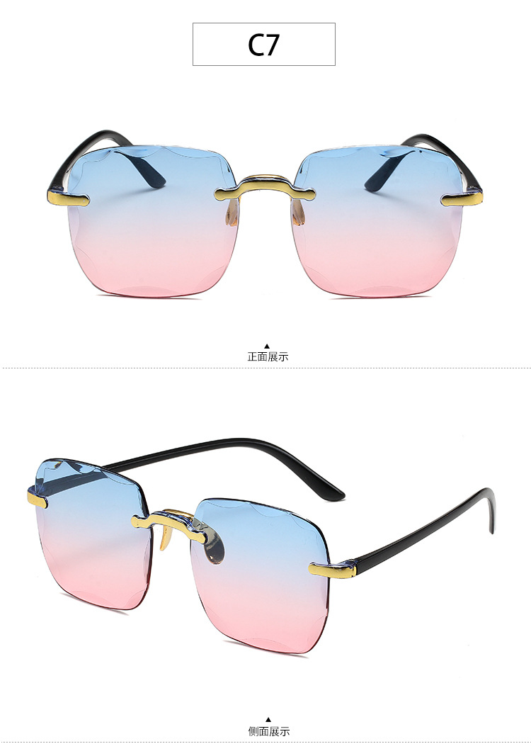 1604欧美无框方形太阳镜时尚潮流切边无框墨镜女士街拍走秀太阳镜