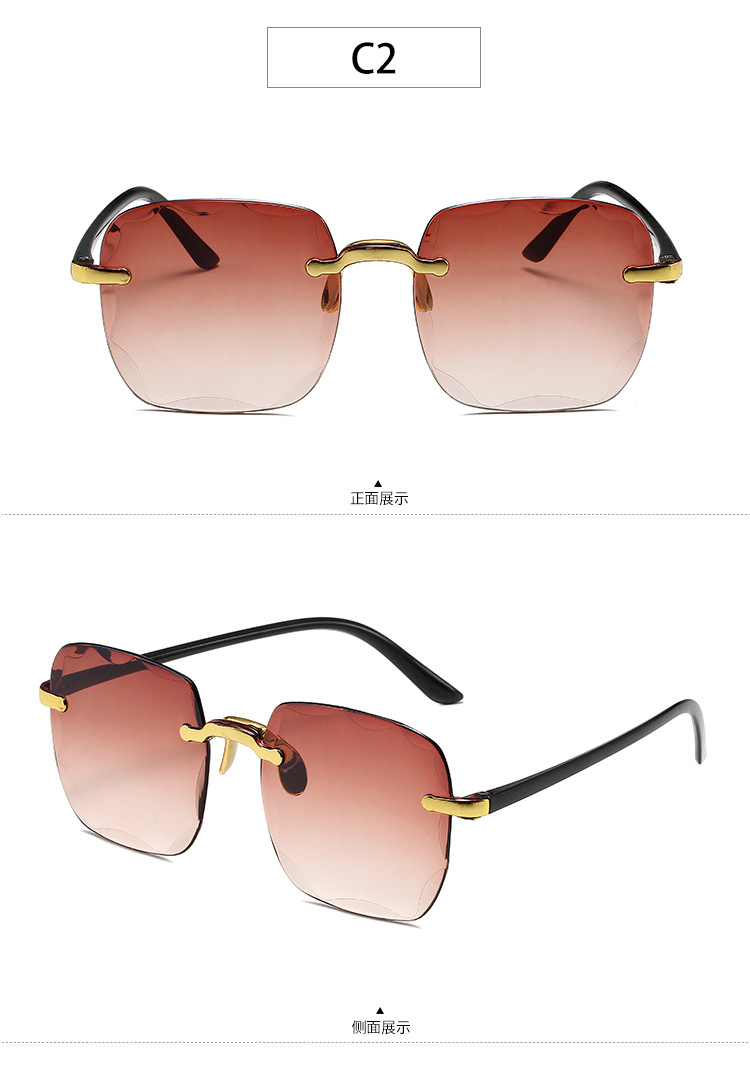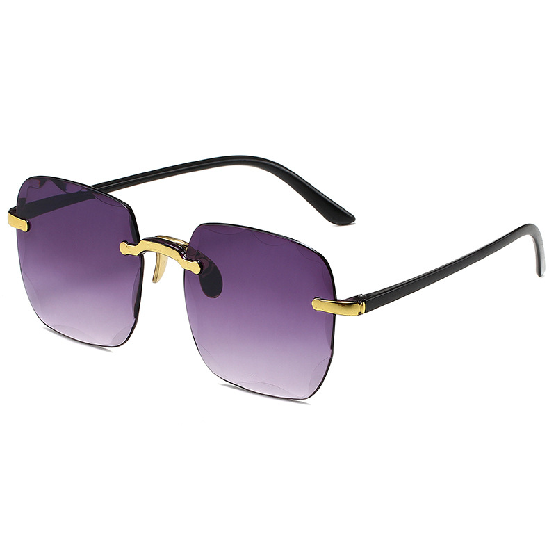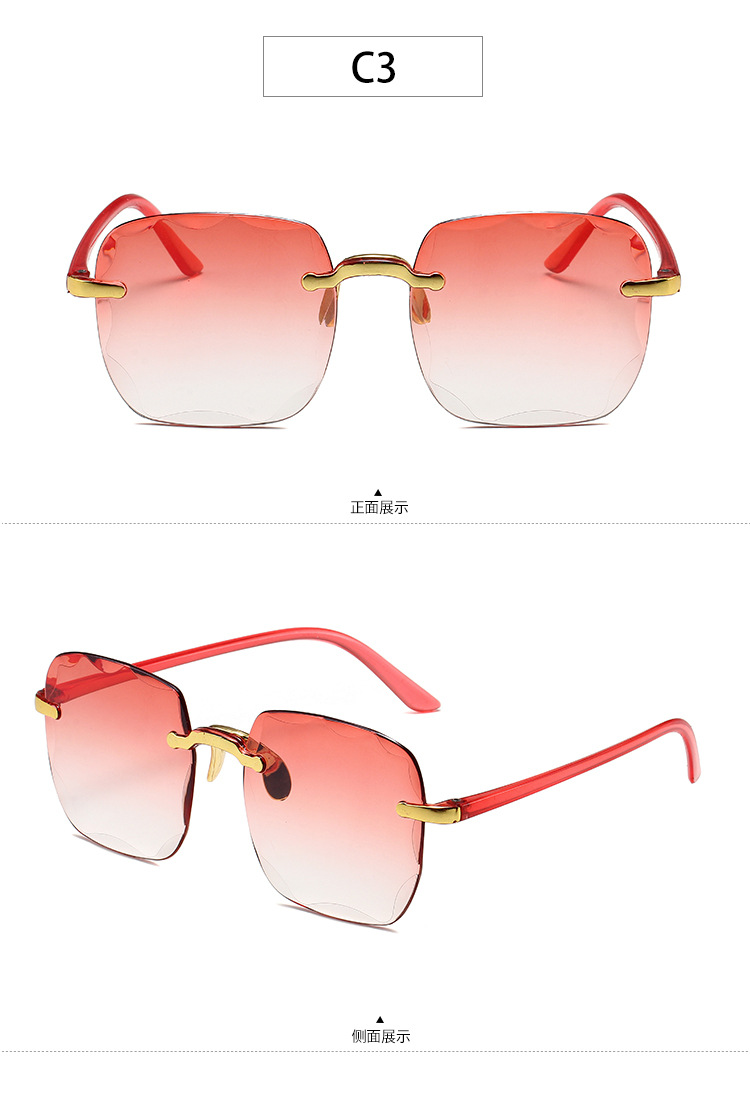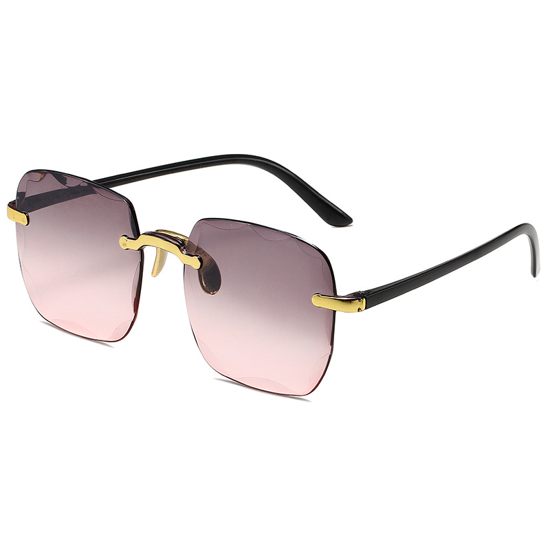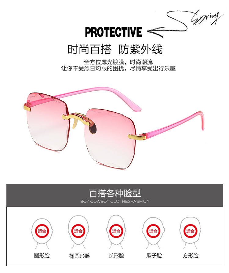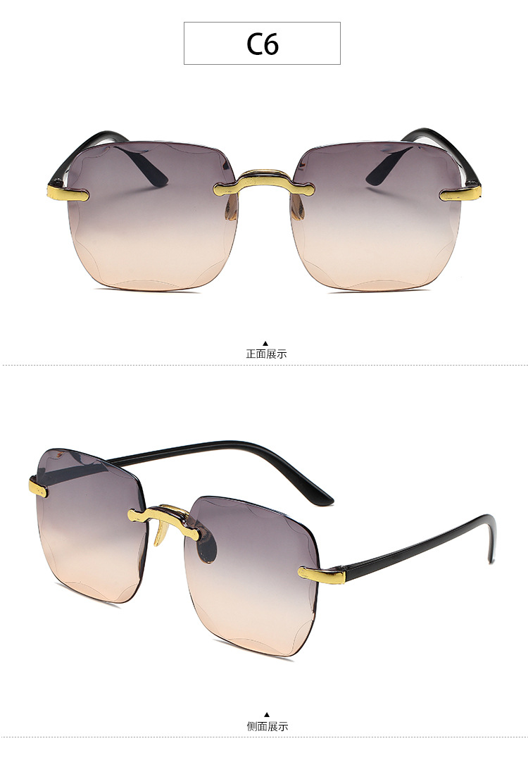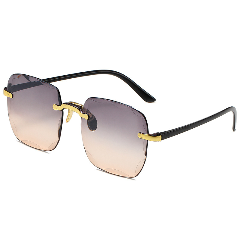1604欧美无框方形太阳镜时尚潮流切边无框墨镜女士街拍走秀太阳镜