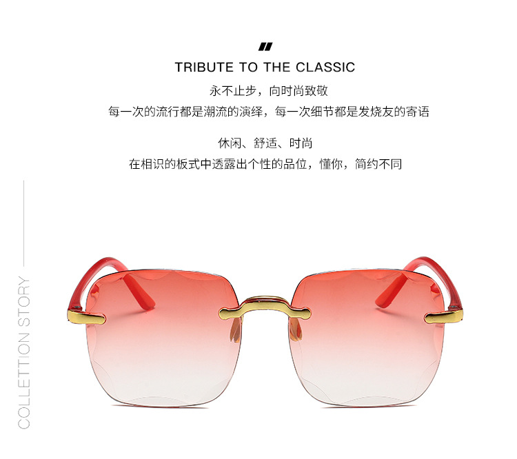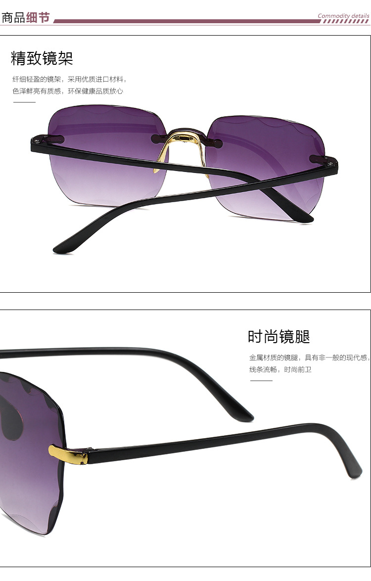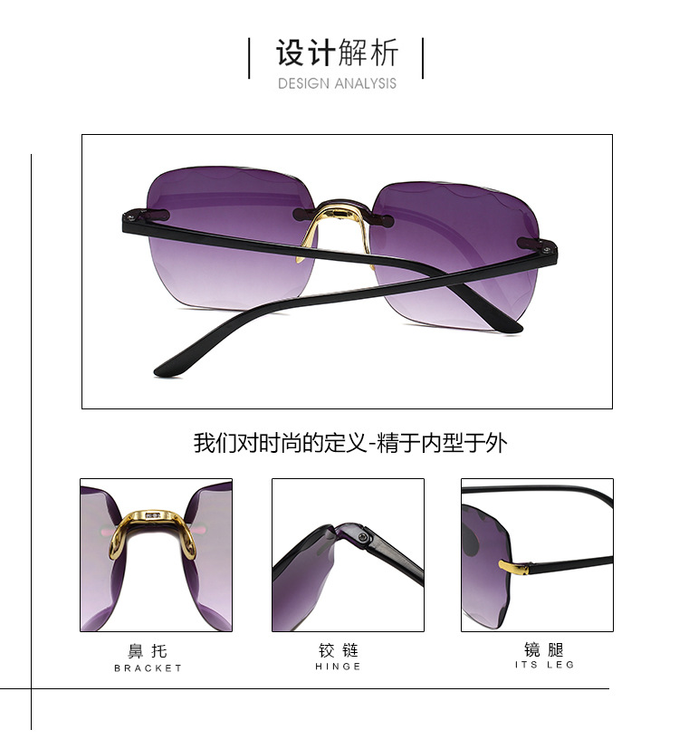 1604欧美无框方形太阳镜时尚潮流切边无框墨镜女士街拍走秀太阳镜 投诉