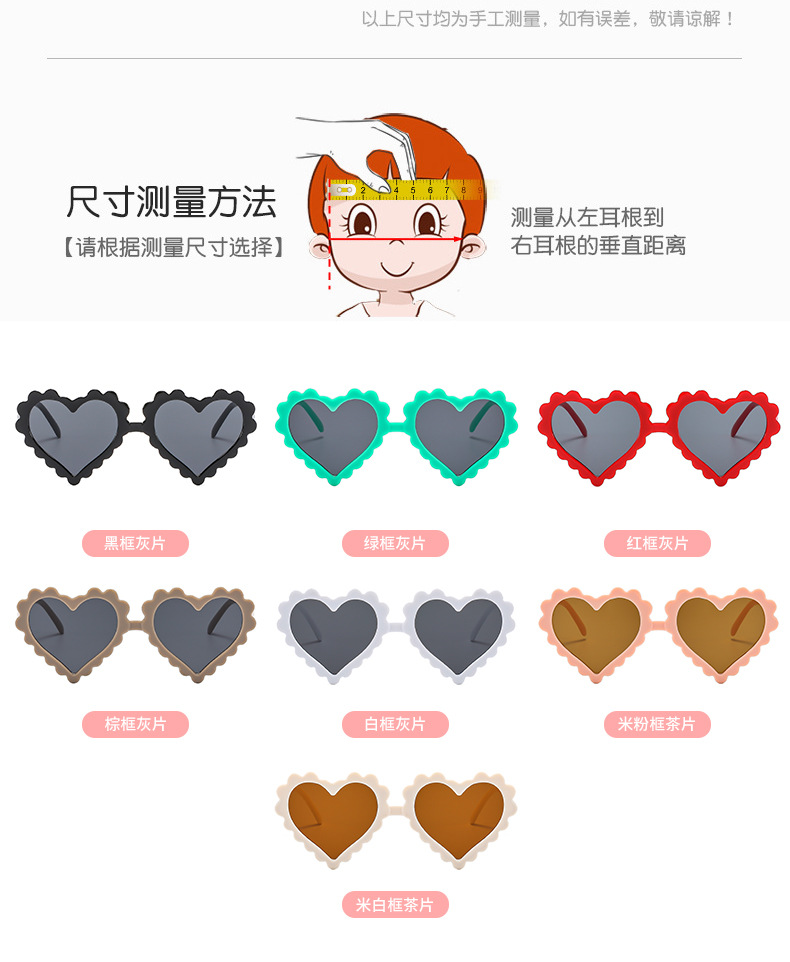 儿童爱心太阳镜可爱男女宝宝心形装饰墨镜出游防晒防紫外线墨镜 投诉