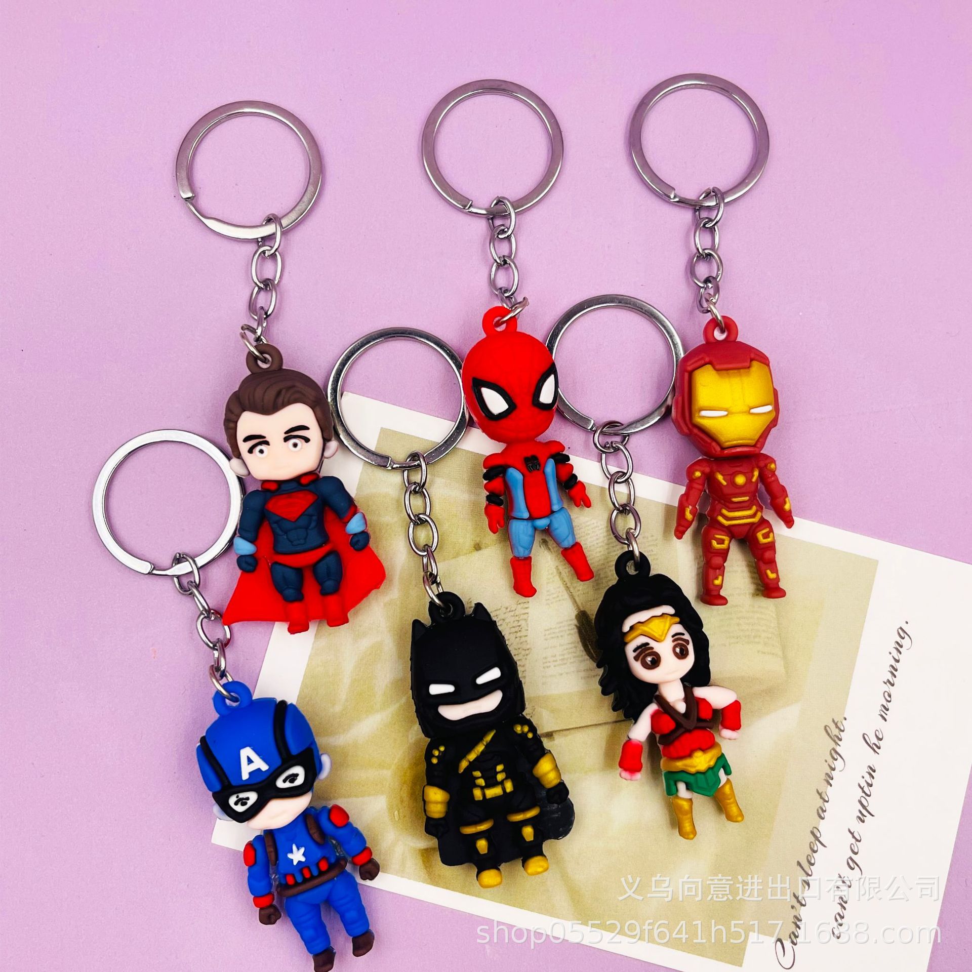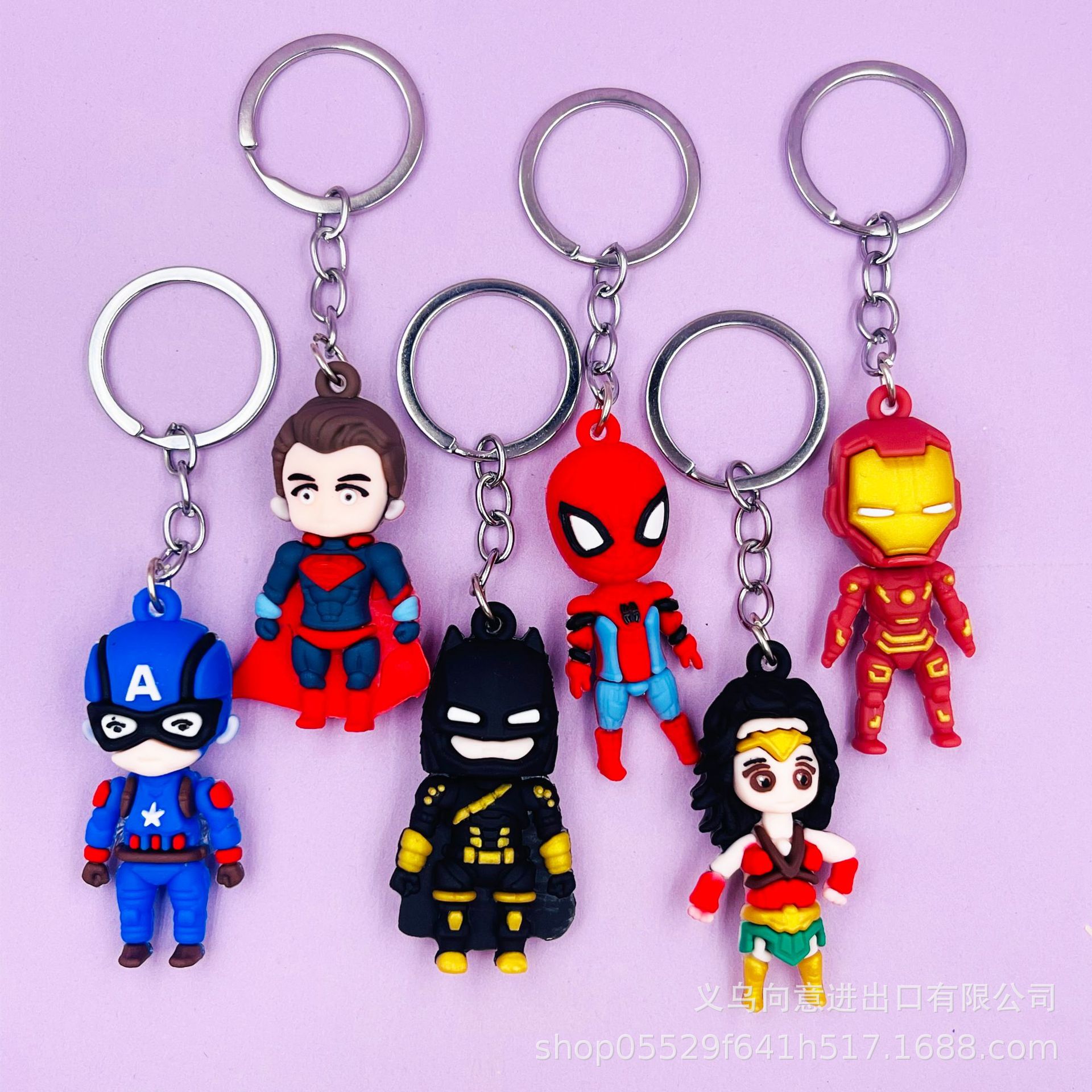 创意卡通小号复仇者联盟钥匙扣包包挂件立体软胶蝙蝠侠蜘蛛侠公仔 投诉