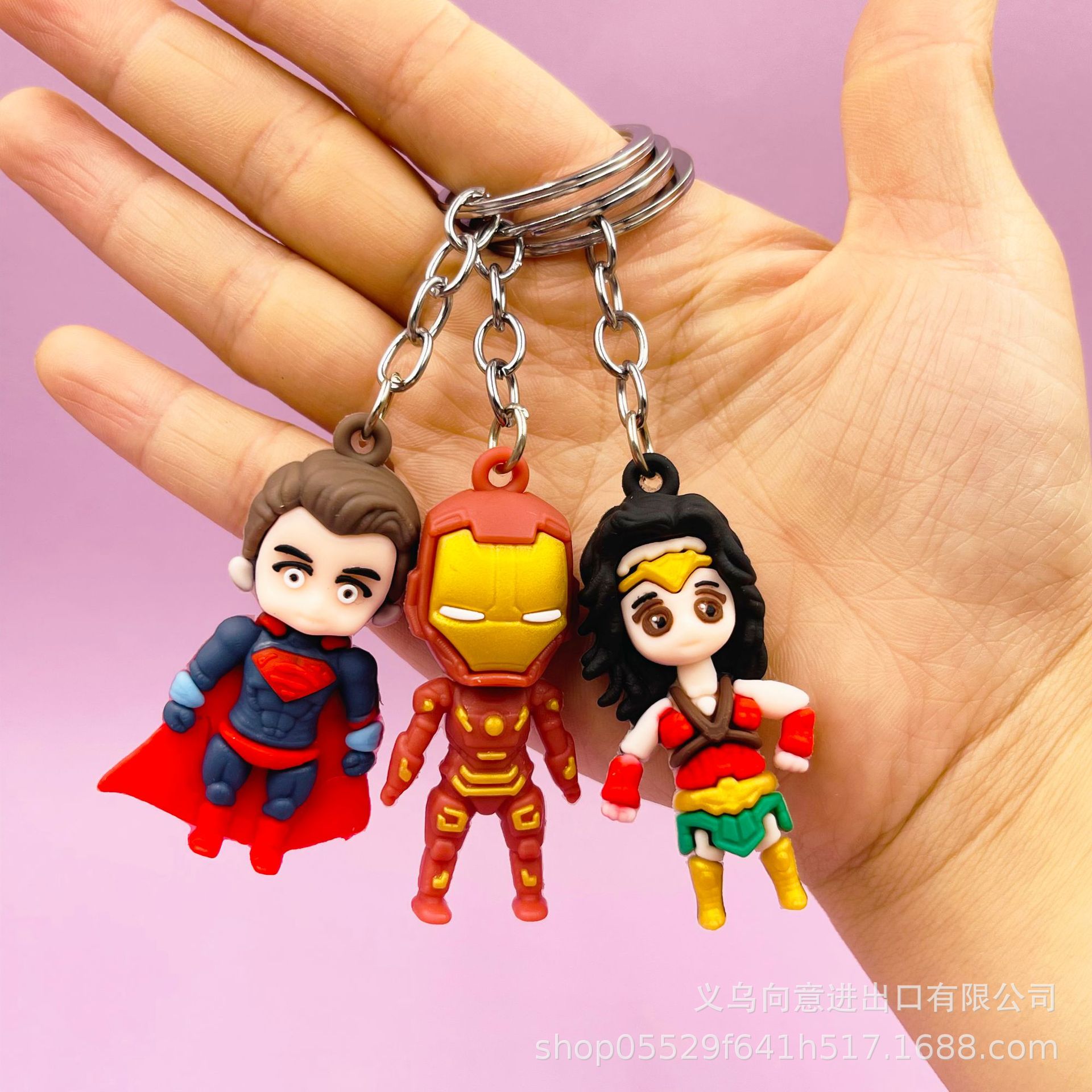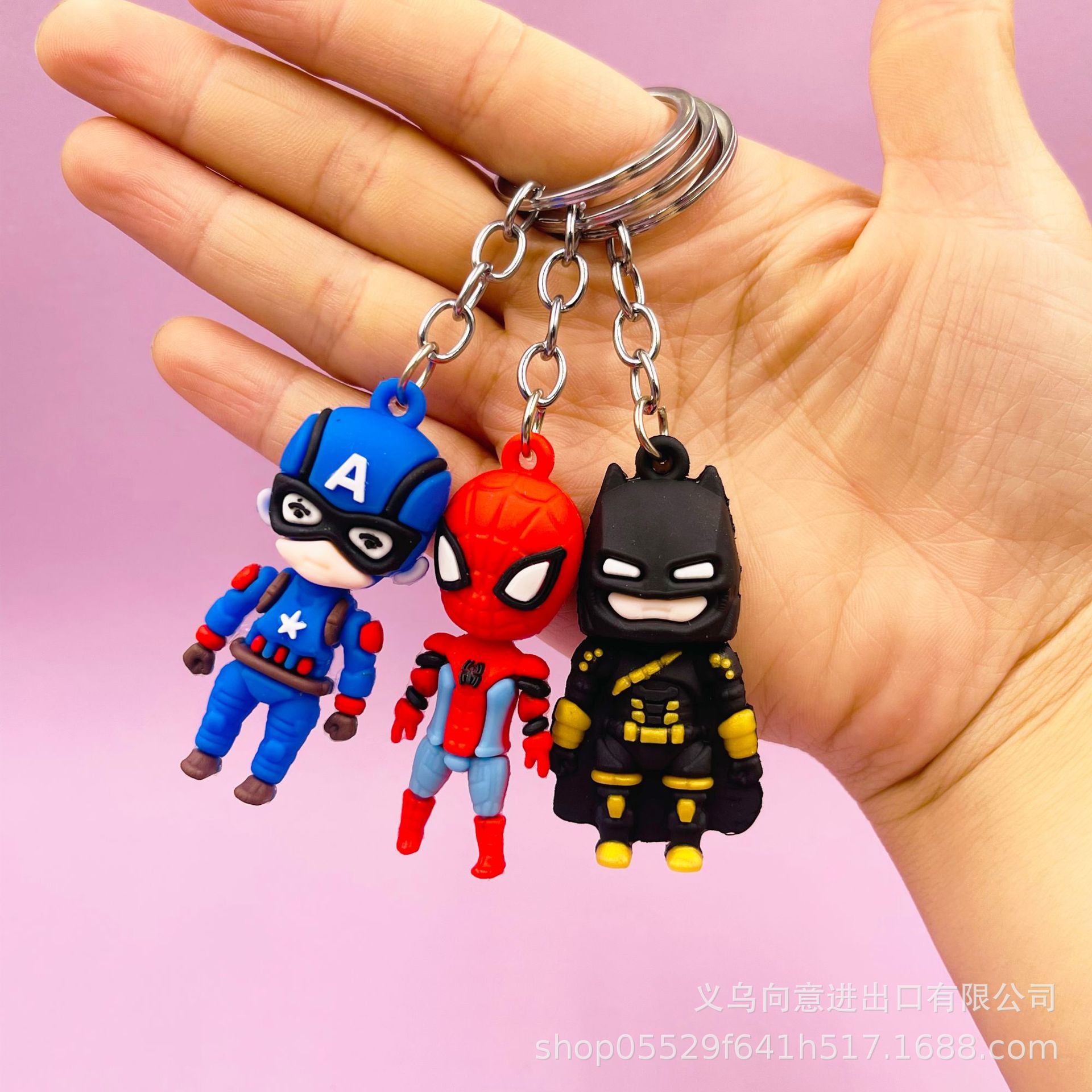 创意卡通小号复仇者联盟钥匙扣包包挂件立体软胶蝙蝠侠蜘蛛侠公仔