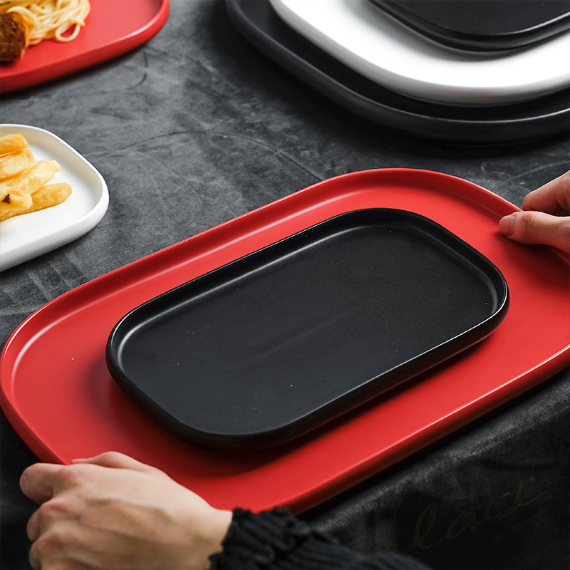 厂家批发陶瓷亚光长方形托盘北欧简约西餐厅牛排热菜盘平底沙拉盘