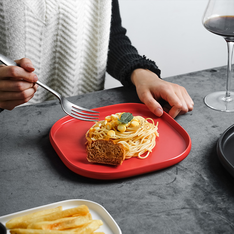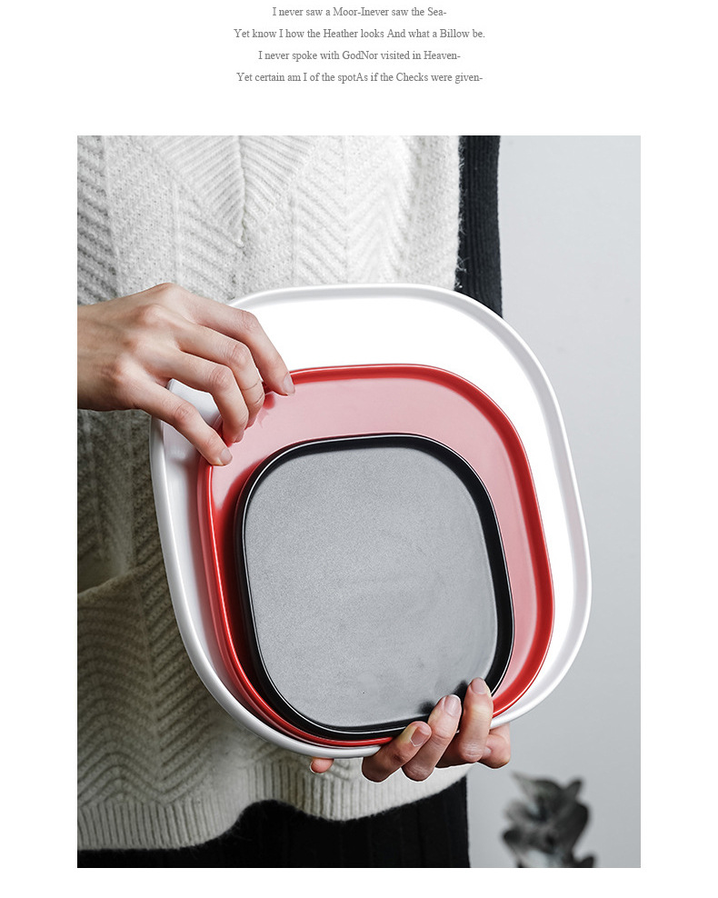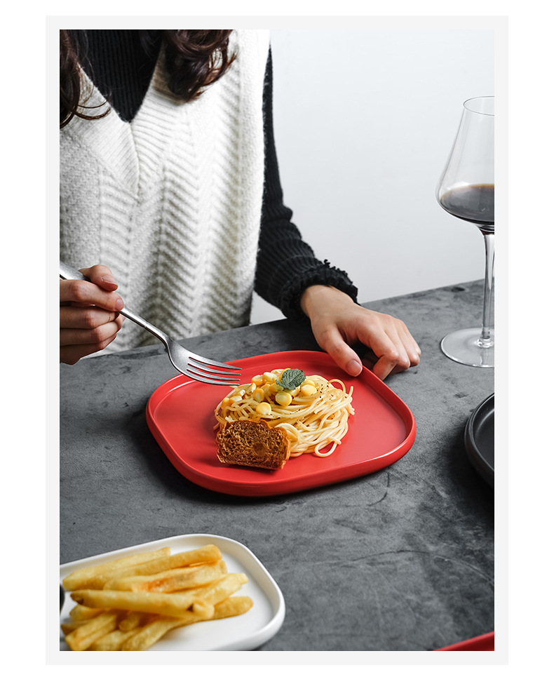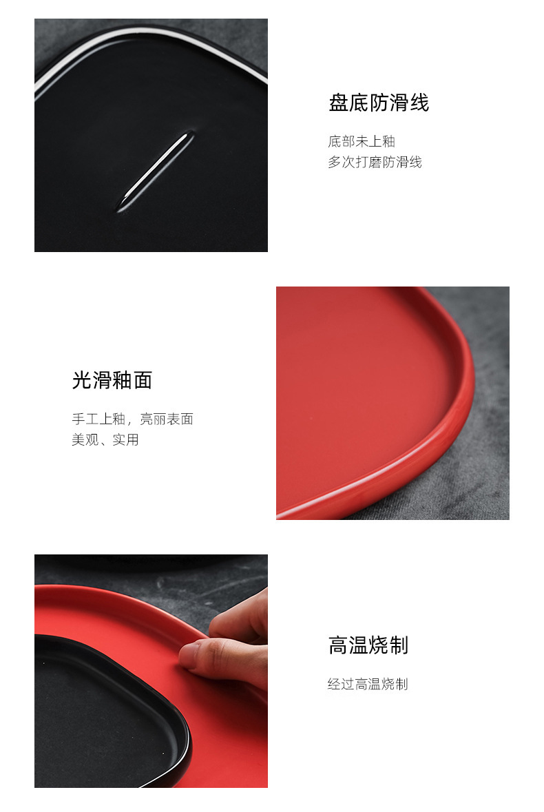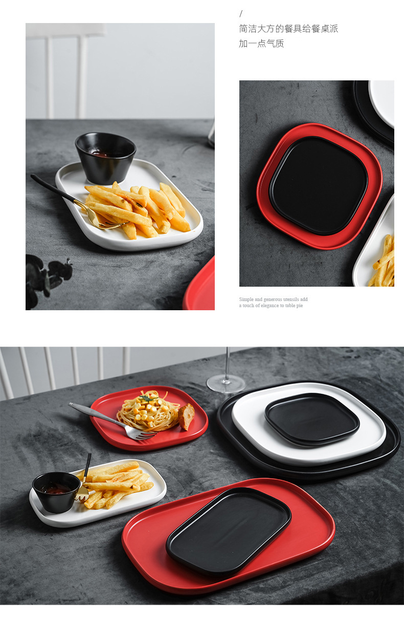 品牌: 青圆陶瓷 货号: 摩登黑白红系列005 产品类别: 盘 材质: 强化瓷 是否进口: 否 适用人群: 成人 图案: 纯色 风格: 现代简约 形状: 方形 微波炉: 可用